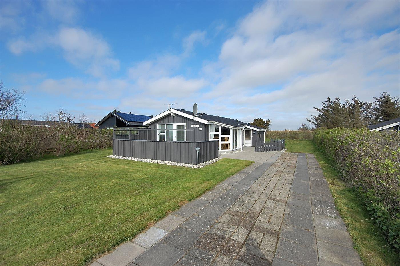 Ferieboligen er beliggende på en 800 m² stor naturgrund. Der er 400 m til havet. Nærmeste forretning er beliggende i en afstand af 500 m. Til ferieboligen hører 50 m² terrasseareal. Der er redskabsrum. Sandkasse. Parkering ved ferieboligen.