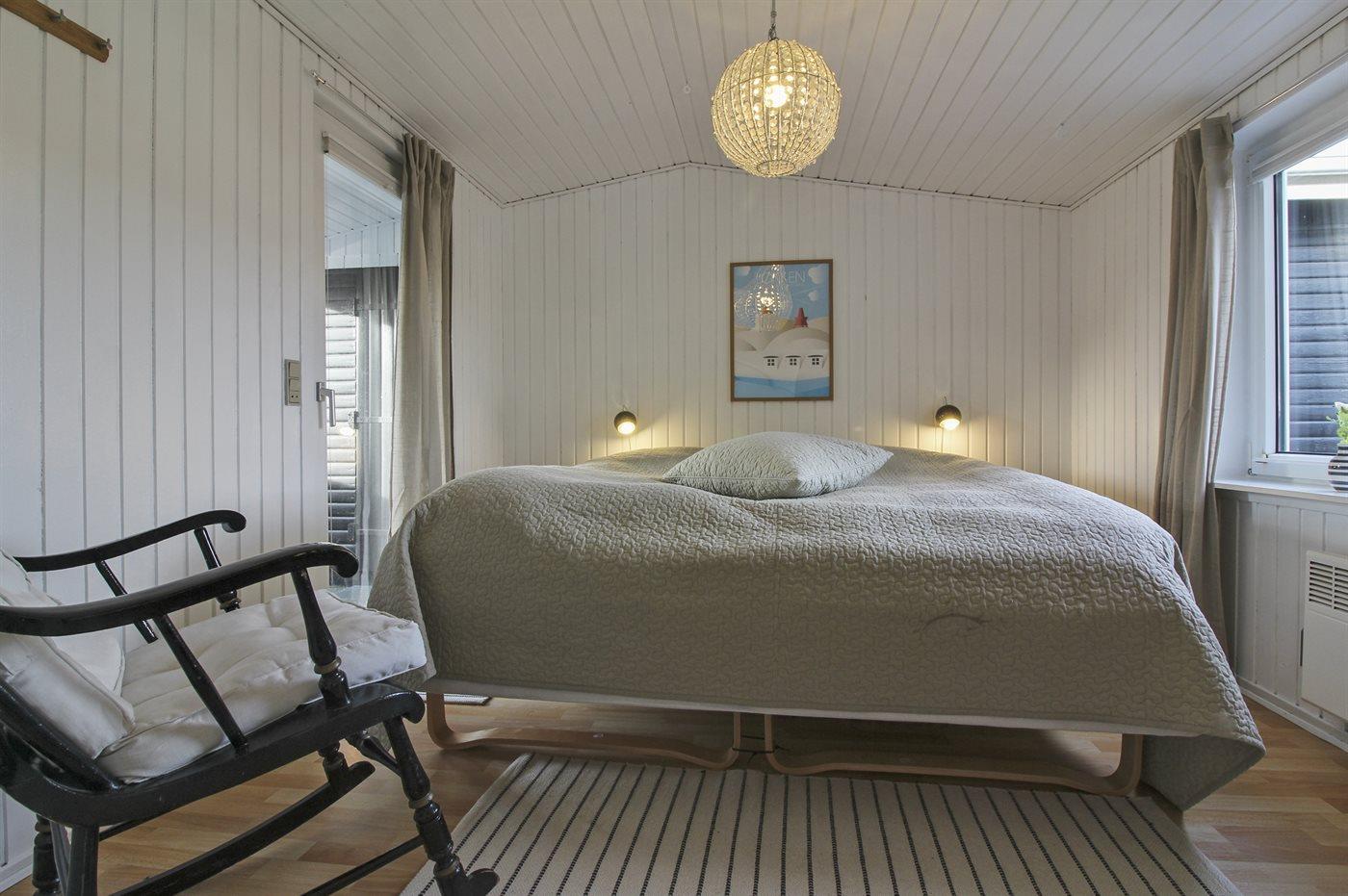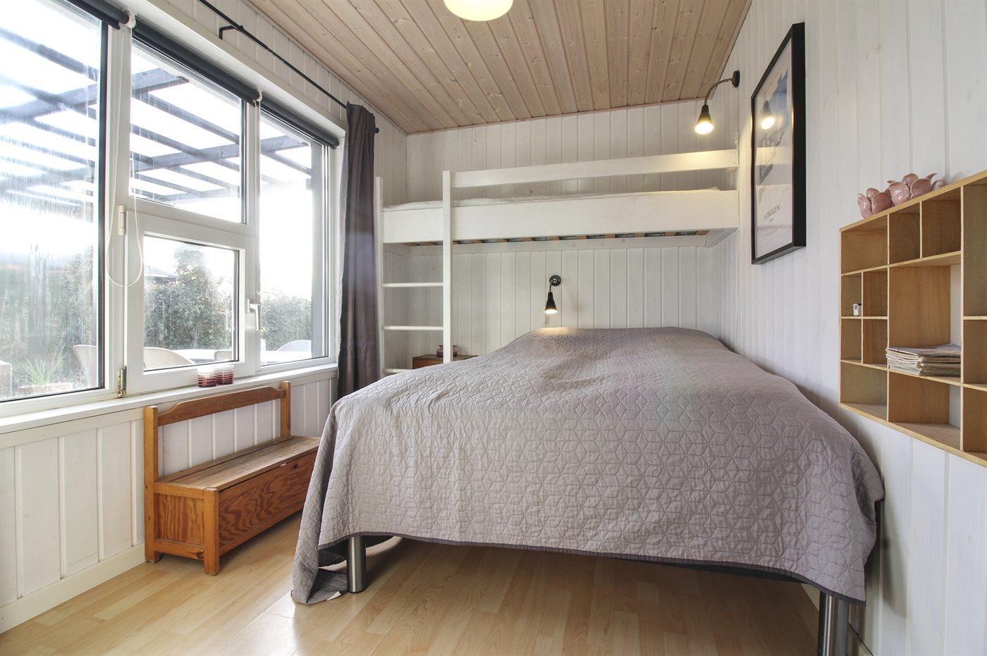 Der er i alt 3 soveværelser. Sovepladserne fordeler sig på: 4 sovepladser i dobbeltsenge. 1 soveplads i enkeltseng.1 soveplads i køjeseng. Derudover er der 1 stk. barneseng.