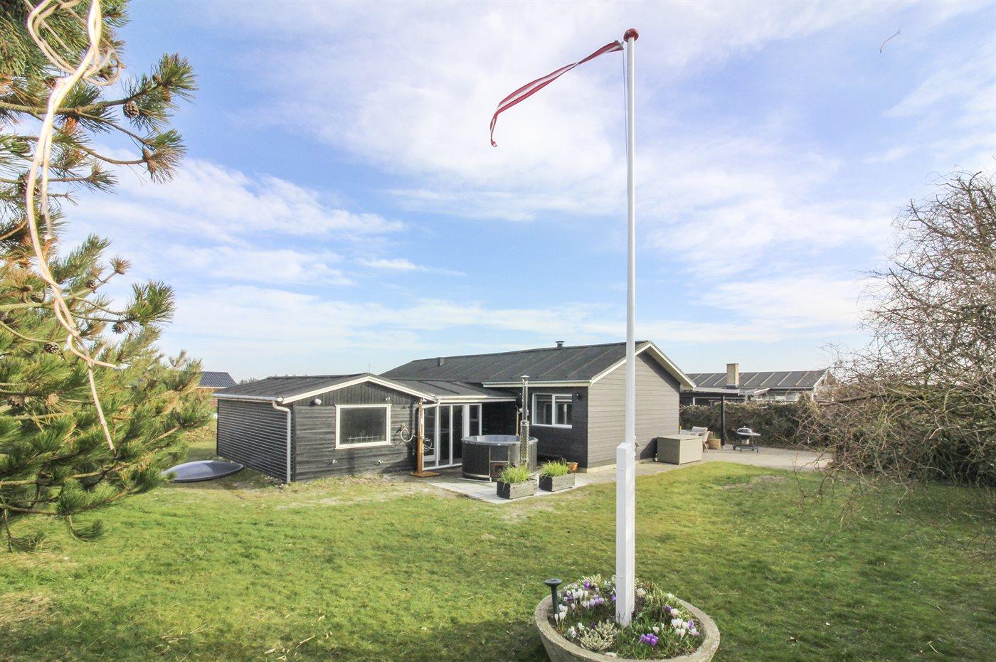 Ferieboligen er beliggende på en 806 m² stor naturgrund. Grunden er indhegnet. Der er 300 m til havet. Nærmeste forretning er beliggende i en afstand af 500 m. Til ferieboligen hører 100 m² terrasseareal. Desuden er der 16 m² overdækket terrasse. Parkering ved ferieboligen.