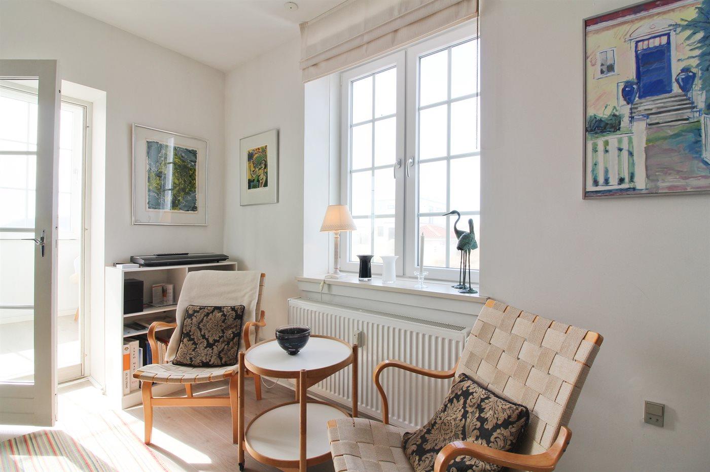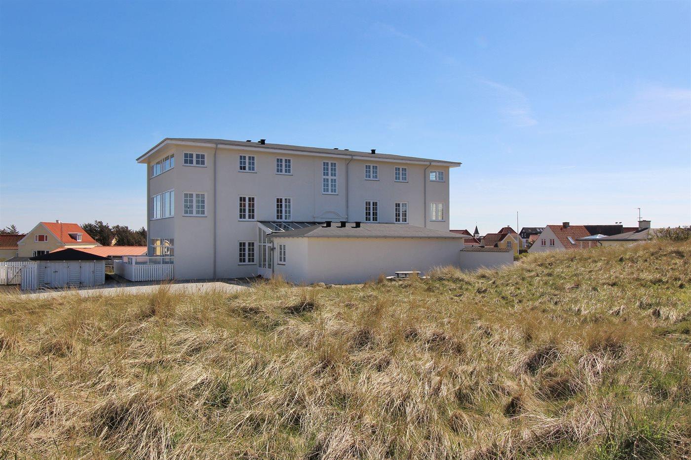 Skøn og meget velholdt ferielejlighed med en lys og indbydende indretning og en attraktiv beliggenhed lige ved stranden og Vesterhavet med direkte udgang til klitterne. Til lejlighederne hører en dejlig stor fælles terrasse med gode læ muligheder, hvorfra en sti fører direkte til stranden. Tæt på ligger centrum med de hyggelige med små gule huse, cafeer, restauranter og butikker.