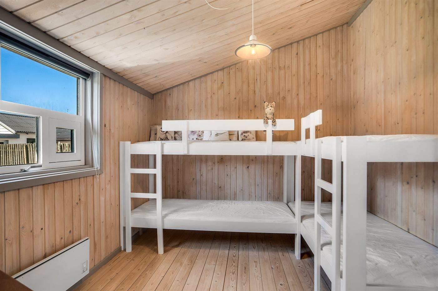 Der er i alt 3 soveværelser. Sovepladserne fordeler sig på: 4 sovepladser i dobbeltsenge. 2 sovepladser i køjeseng. Derudover er der 1 stk. barneseng.