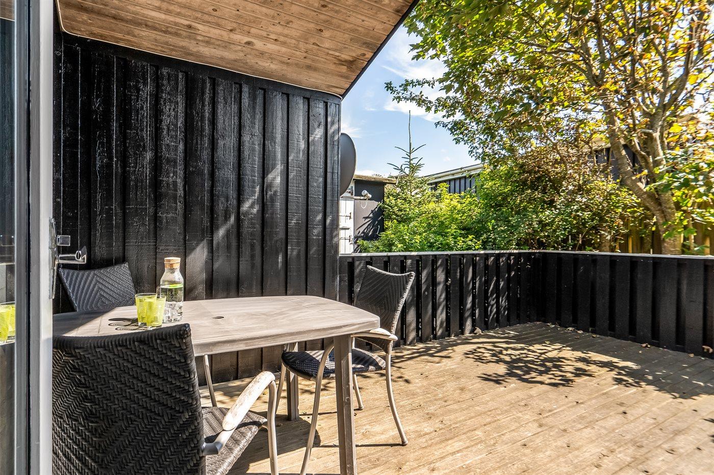 Ferieboligen er beliggende på en 952 m² stor naturgrund. Der er 450 m til havet. Nærmeste forretning er beliggende i en afstand af 400 m. Til ferieboligen hører 31 m² terrasseareal. Desuden er der 4 m² overdækket terrasse. Der er redskabsrum. Parkering ved ferieboligen.
