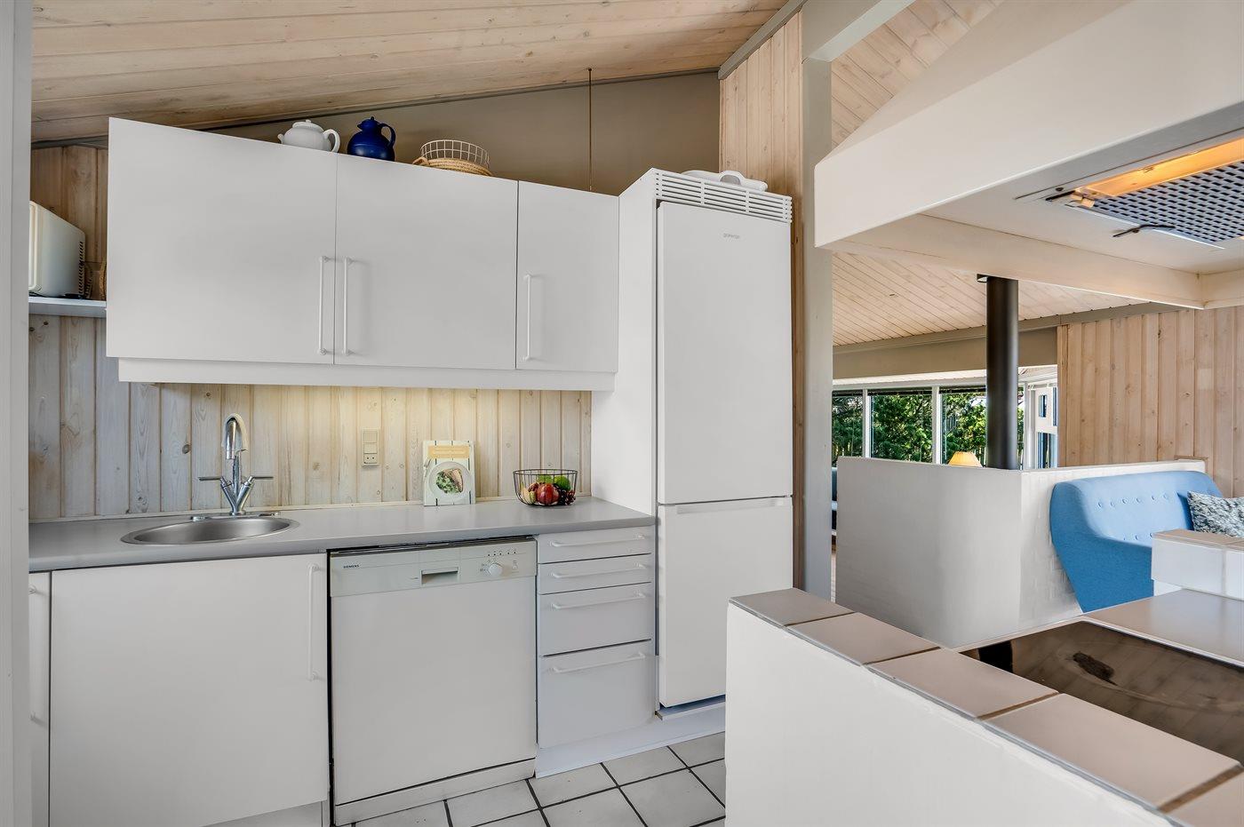 Køkkenet er udstyret med 1 køleskab. Der er 4 keramiske kogeplader, varmluftovn, mikrobølgeovn samt opvaskemaskine.