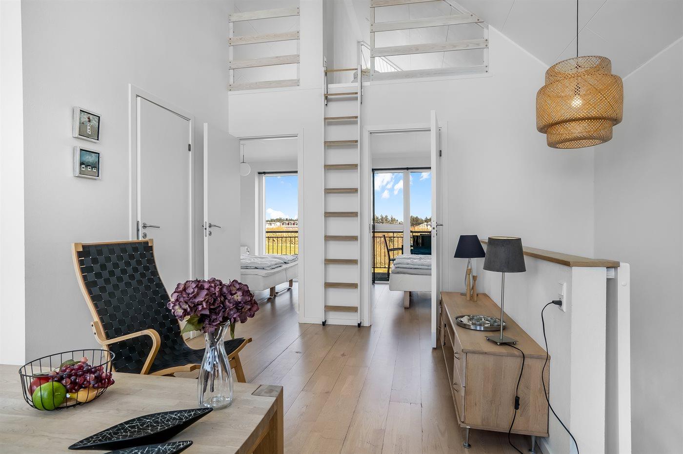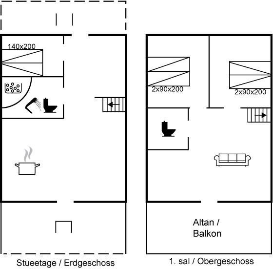 Der er i alt 3 soveværelser. Sovepladserne fordeler sig på: 4 sovepladser i dobbeltsenge. 2 sovepladser i enkeltsenge. 1 soveplads på madras. 1 af disse sovepladser befinder sig på husets hems.