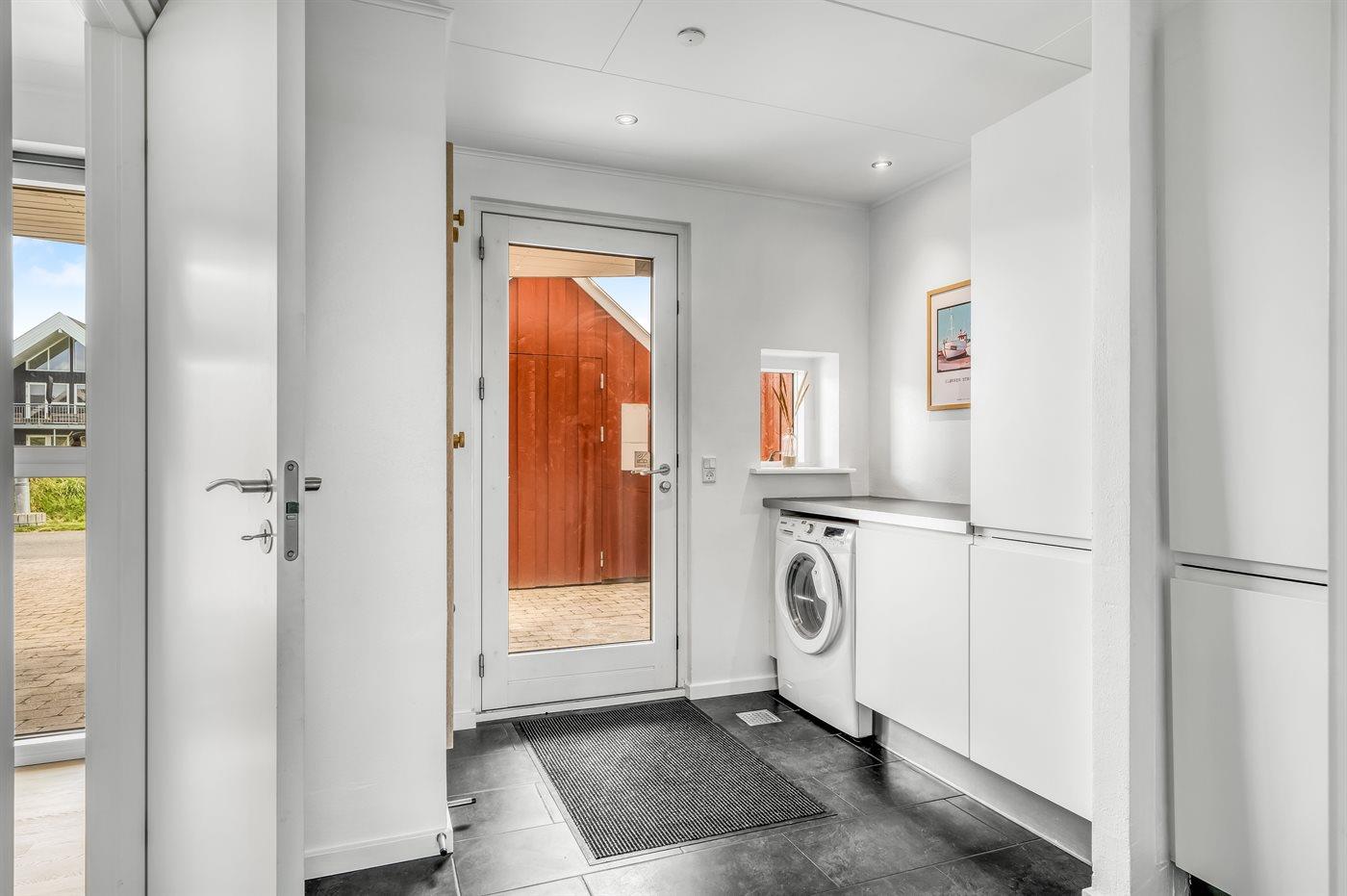 Køkkenet er udstyret med 1 køleskab. Der er 4 keramiske kogeplader, varmluftovn, mikrobølgeovn samt opvaskemaskine Der er gulvvarme i køkkenet.