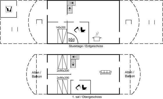 Der er i alt 3 soveværelser. Sovepladserne fordeler sig på: 4 sovepladser i dobbeltsenge. 2 sovepladser i enkeltsenge. 1 soveplads på madras. Derudover er der 1 stk. barneseng.