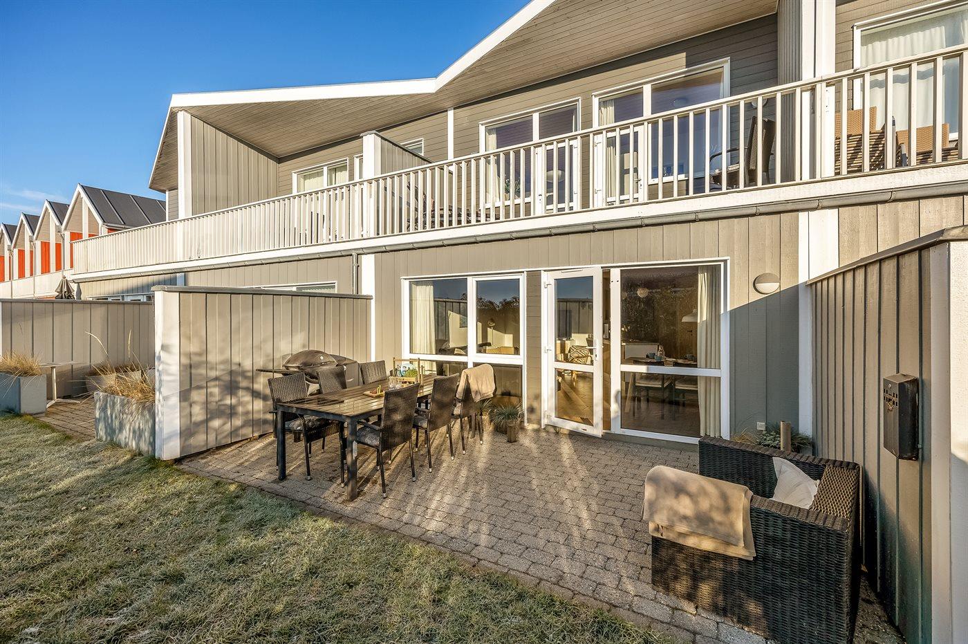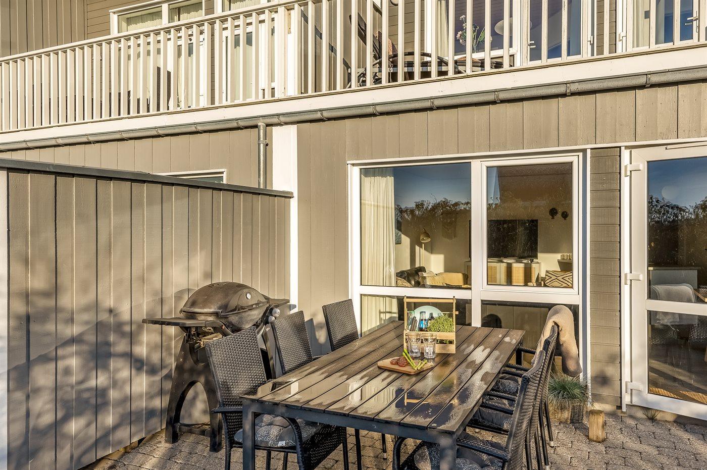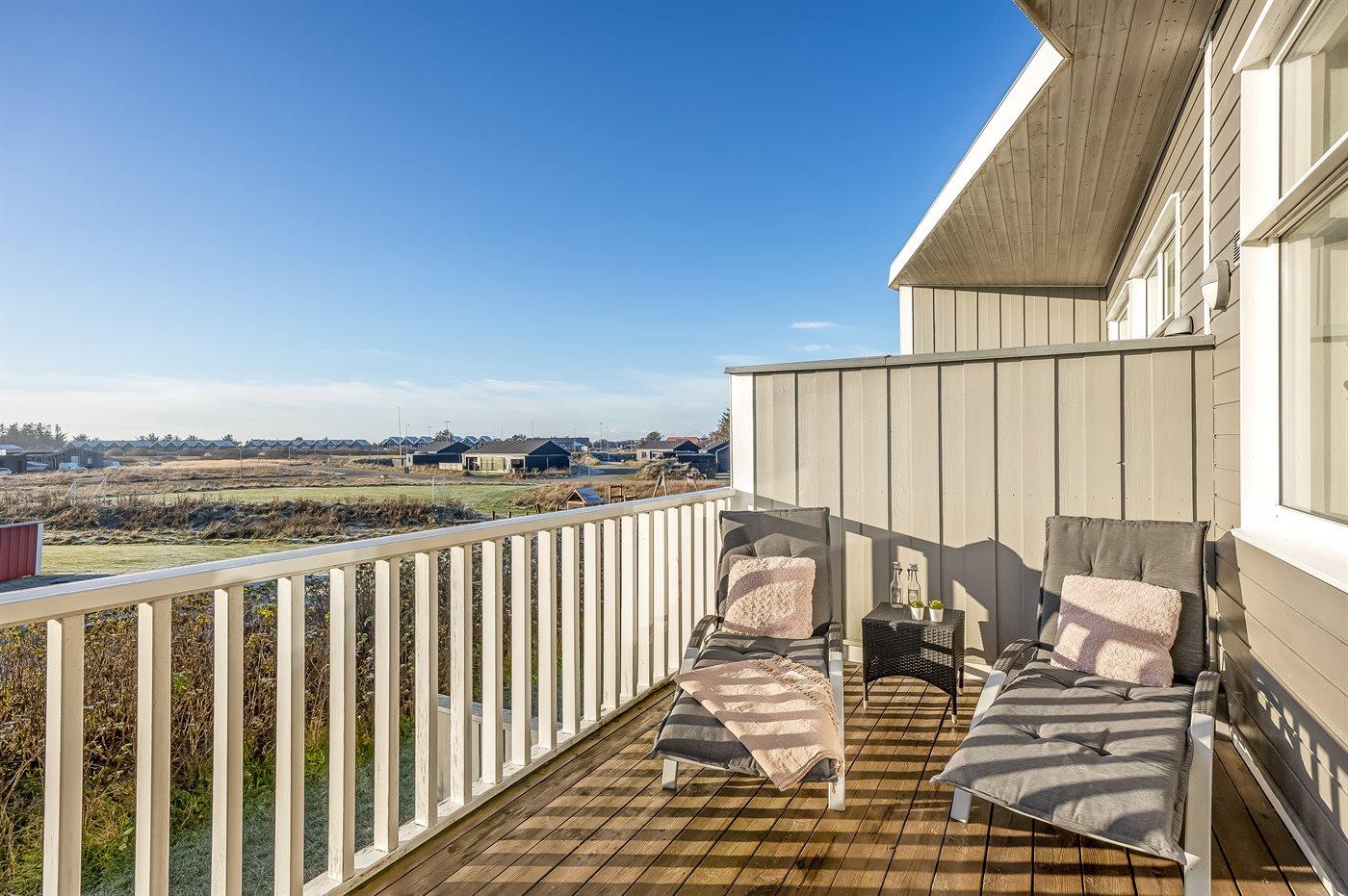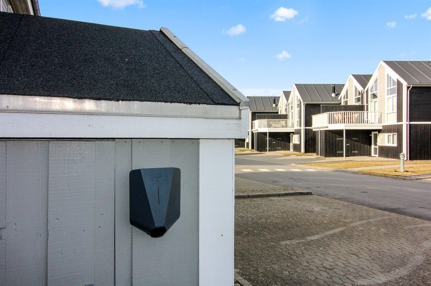 Til ferieboligen hører 18 m² terrasseareal. Desuden er der 10 m² overdækket terrasse. Udgang til altan. I området er der 2 legepladser. Der er installeret stik til opladning af elbil. Type 2 stik. CEE stik. Med 11 kW ladeeffekt. Parkering ved ferieboligen.