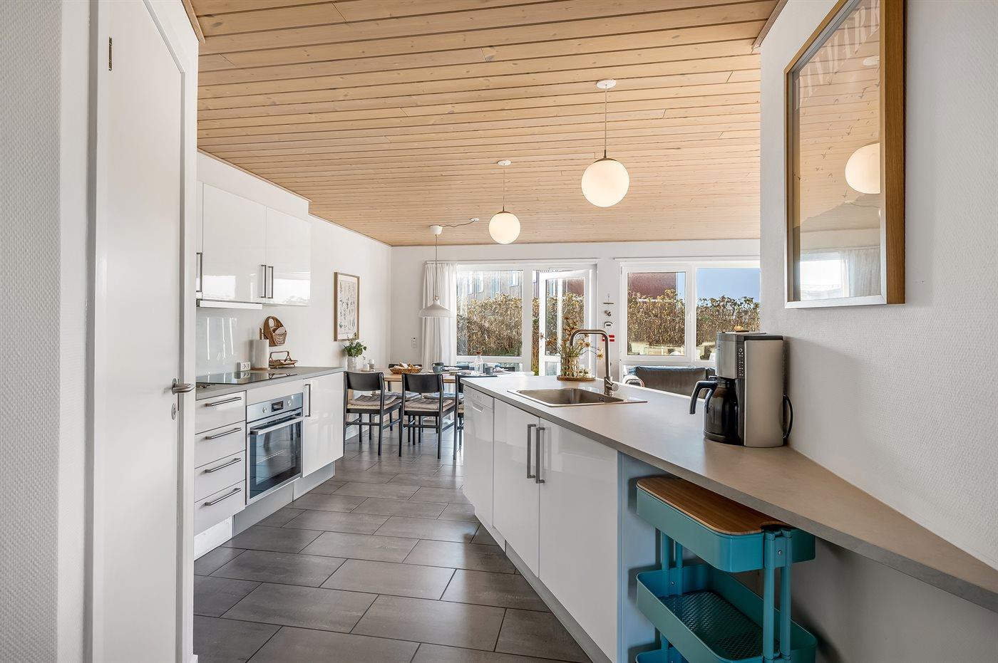 Køkkenet er udstyret med 1 køleskab. Der er 4 induktionskogeplader, varmluftovn, mikrobølgeovn samt opvaskemaskine.