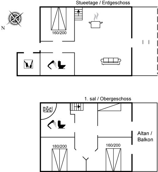 Der er i alt 4 soveværelser. Sovepladserne fordeler sig på: 6 sovepladser i dobbeltsenge. 1 soveplads i enkeltseng. Derudover er der 1 stk. barneseng. Der er gulvvarme i et af soveværelserne.