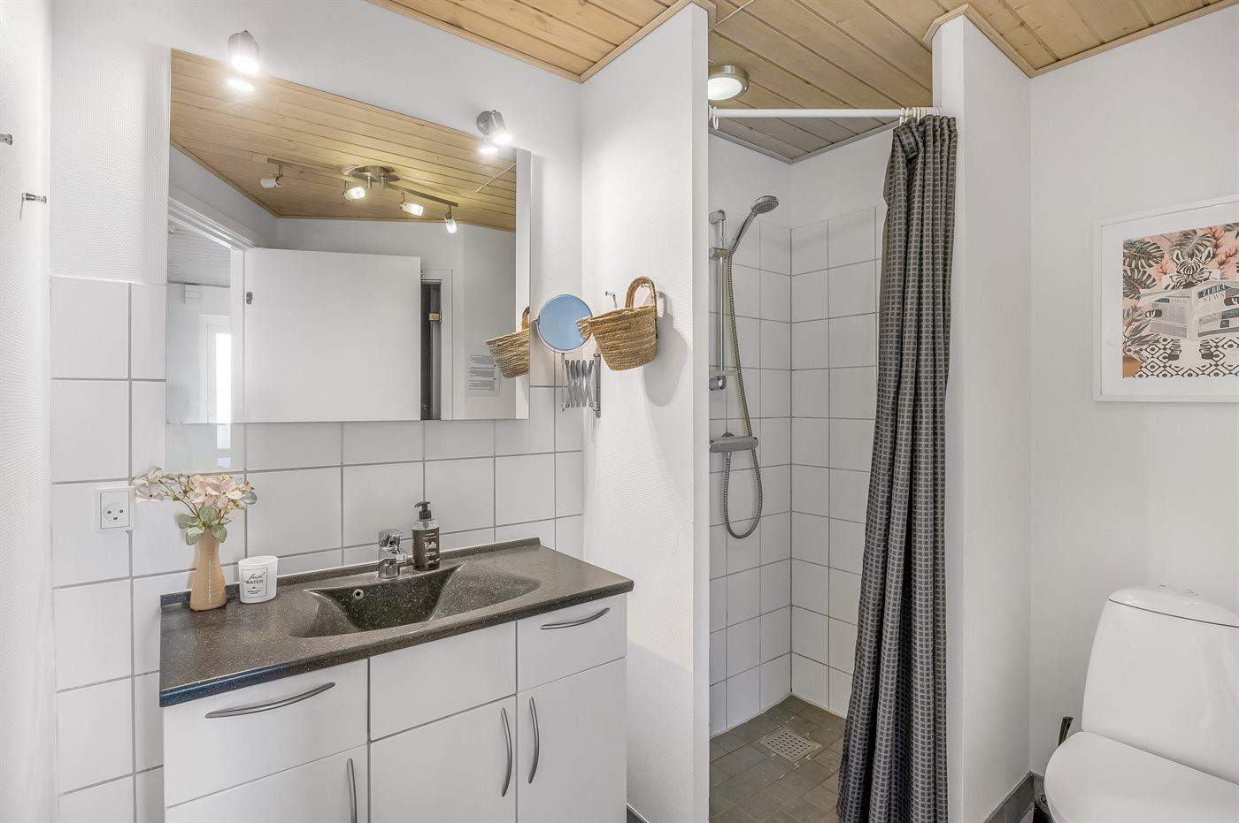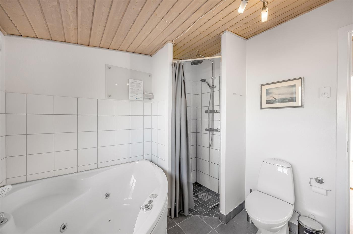 Der er 2 badeværelser med bruseniche og 2 toiletter. Der er gulvvarme på 2 badeværelser. Der er mulighed for afslapning i indendørs spa til 2 personer eller en tur i saunaen.