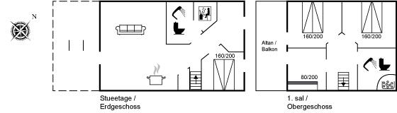 Der er i alt 4 soveværelser. Sovepladserne fordeler sig på: 6 sovepladser i dobbeltsenge. 2 sovepladser i køjeseng.