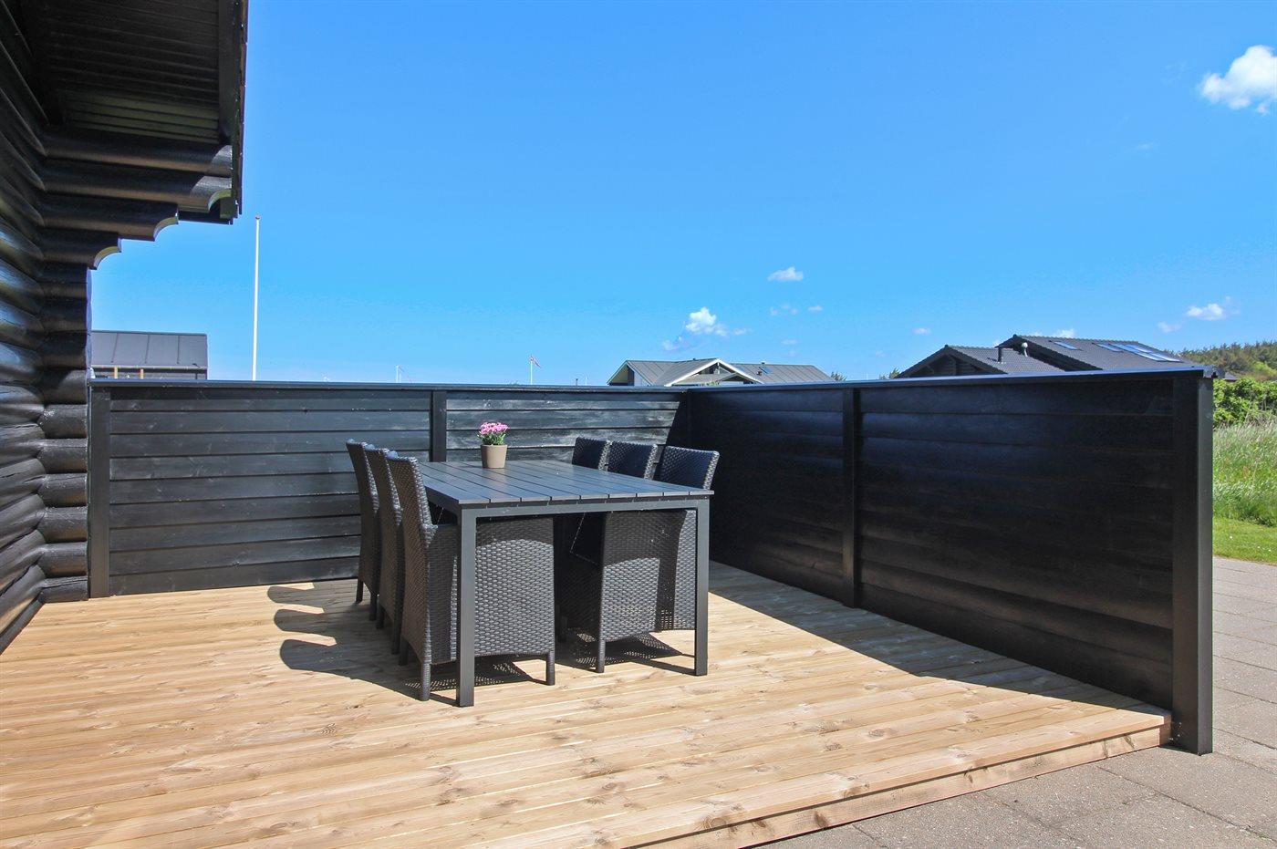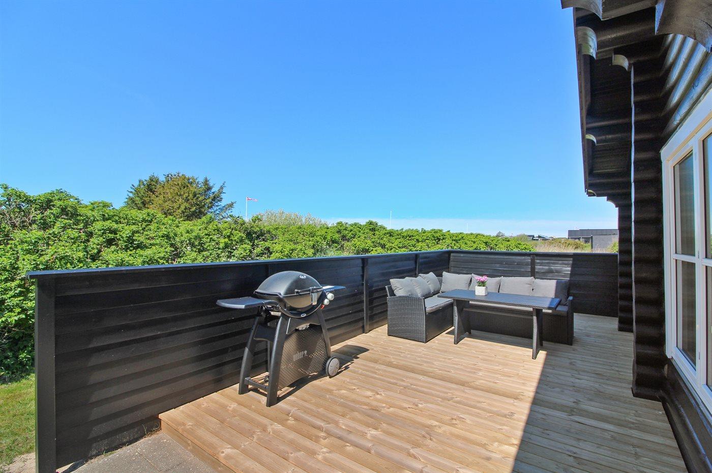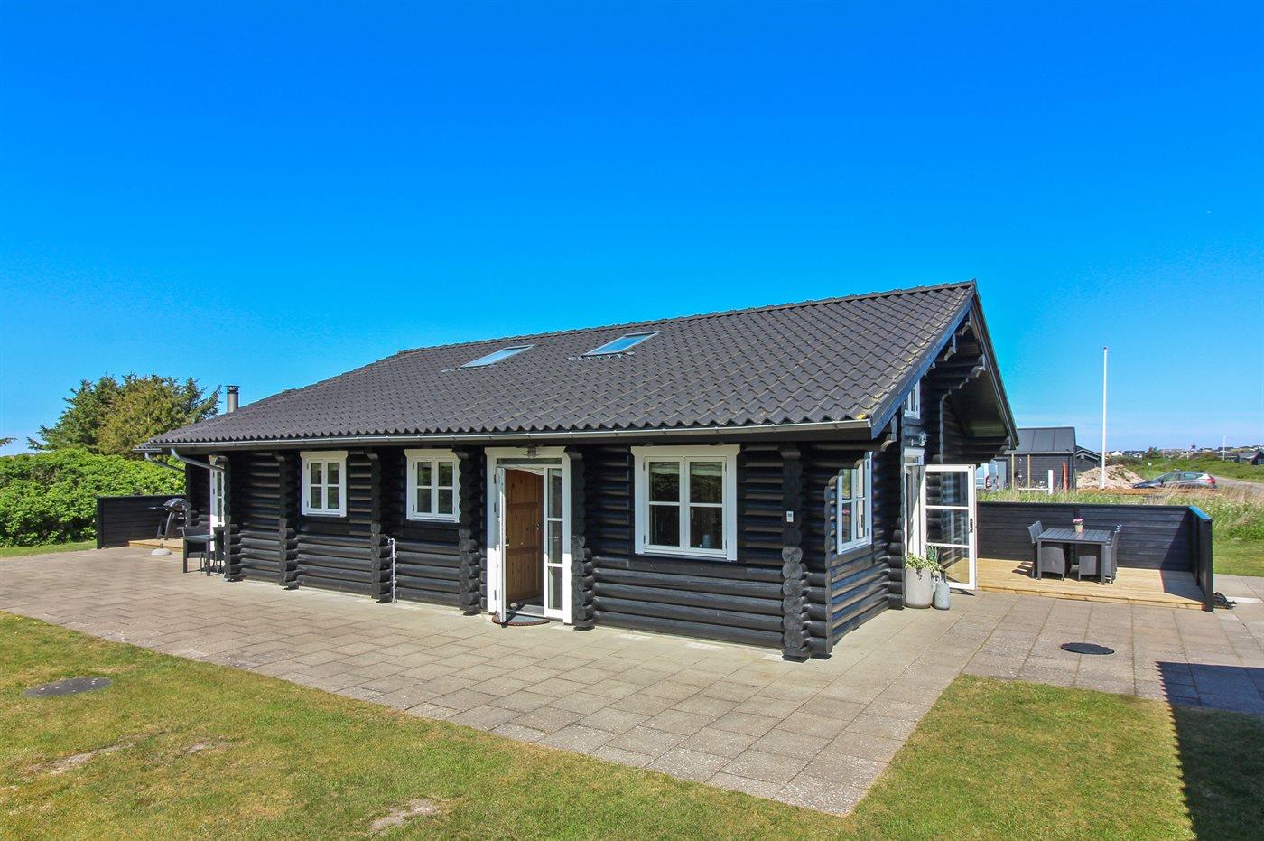 Hyggeligt bjælkehus i roligt område nær Løkken med stor terrasse og plads til hele familien.