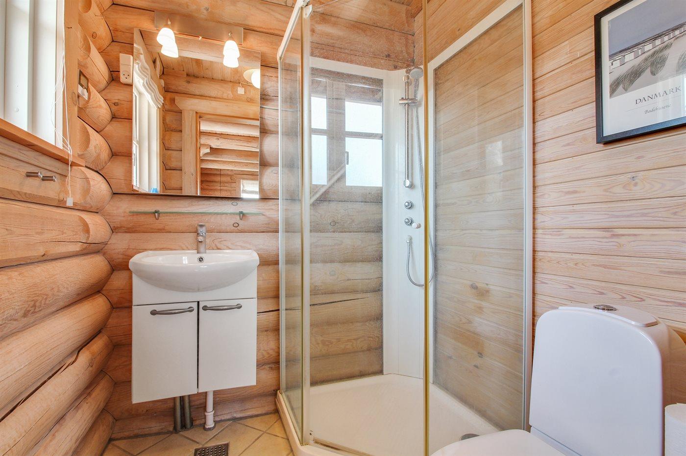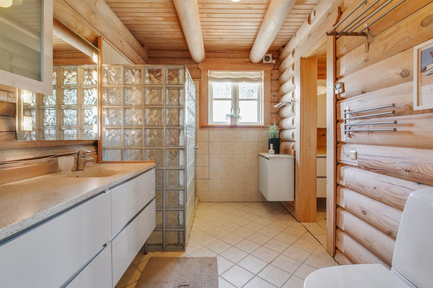 Der er 2 badeværelser med bruseniche og 2 toiletter. Der er gulvvarme på 1 badeværelse.