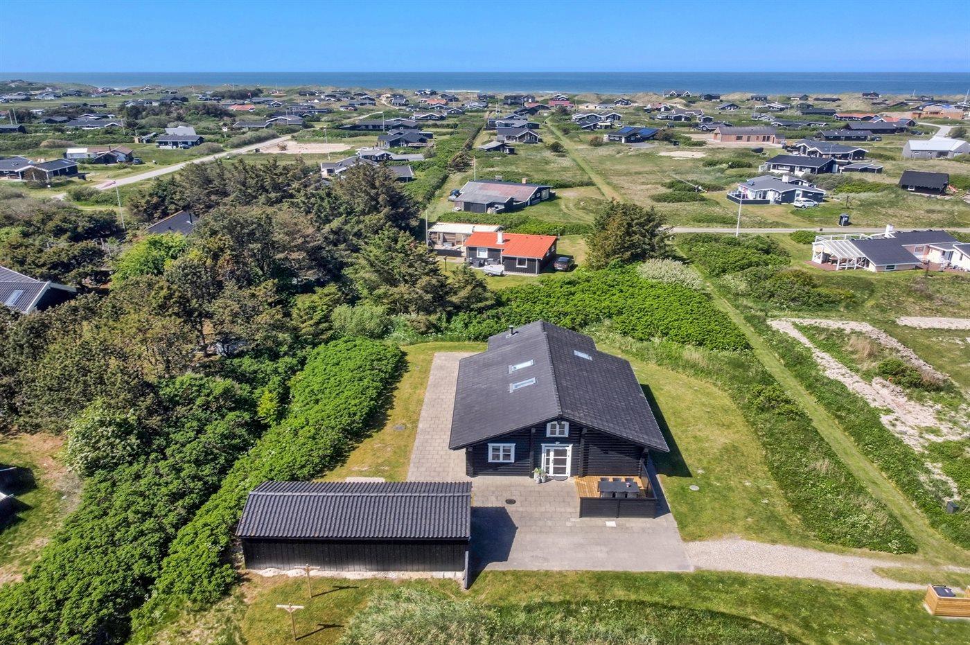 Ferieboligen er beliggende på en 1381 m² stor naturgrund. Der er 600 m til havet. Nærmeste forretning er beliggende i en afstand af 1200 m. Til ferieboligen hører 140 m² terrasseareal. Sandkasse. Parkering ved ferieboligen.
