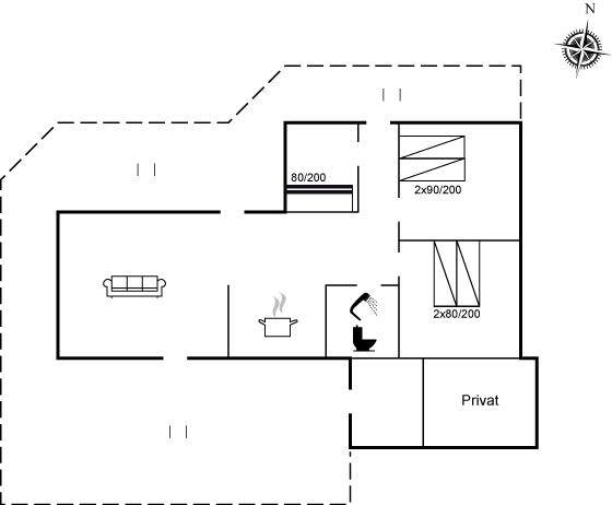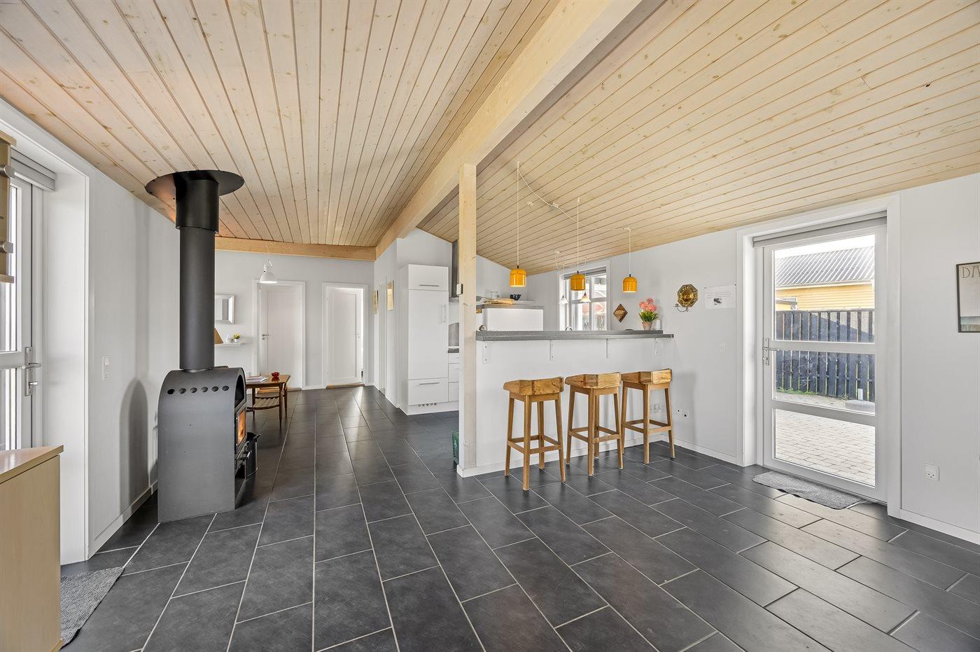 Sommerhuset egner sig til 6 personer samt 1 barn op til 3 år. Ferieboligen er på 131 m² og er bygget i 1978. I 2007 gennemgik ferieboligen en renovering. Det er tilladt at medbringe 2 husdyr. Der er gulvvarme i stuen. Der er gulvvarme i alle klinkegulve. Ferieboligen har vaskemaskine. Frysekapacitet på 80 liter. Der er desuden brændeovn. Til de små er der 1 stk. barnestol.