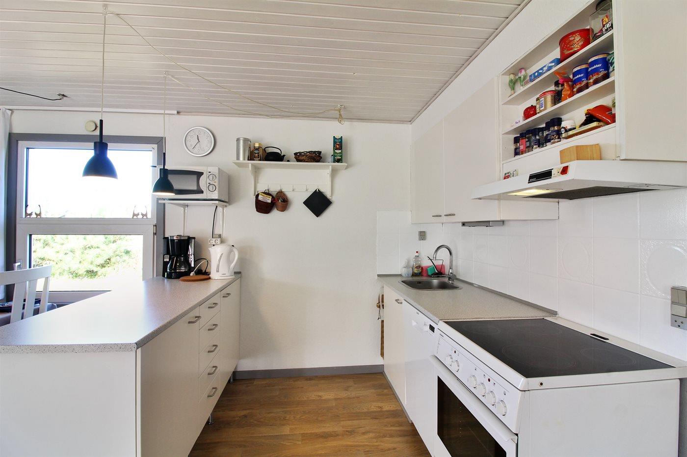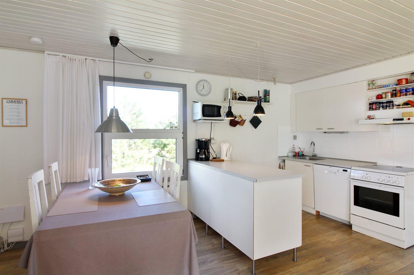 Køkkenet er udstyret med 1 køleskab. Der er 4 keramiske kogeplader, varmluftovn, mikrobølgeovn samt opvaskemaskine.