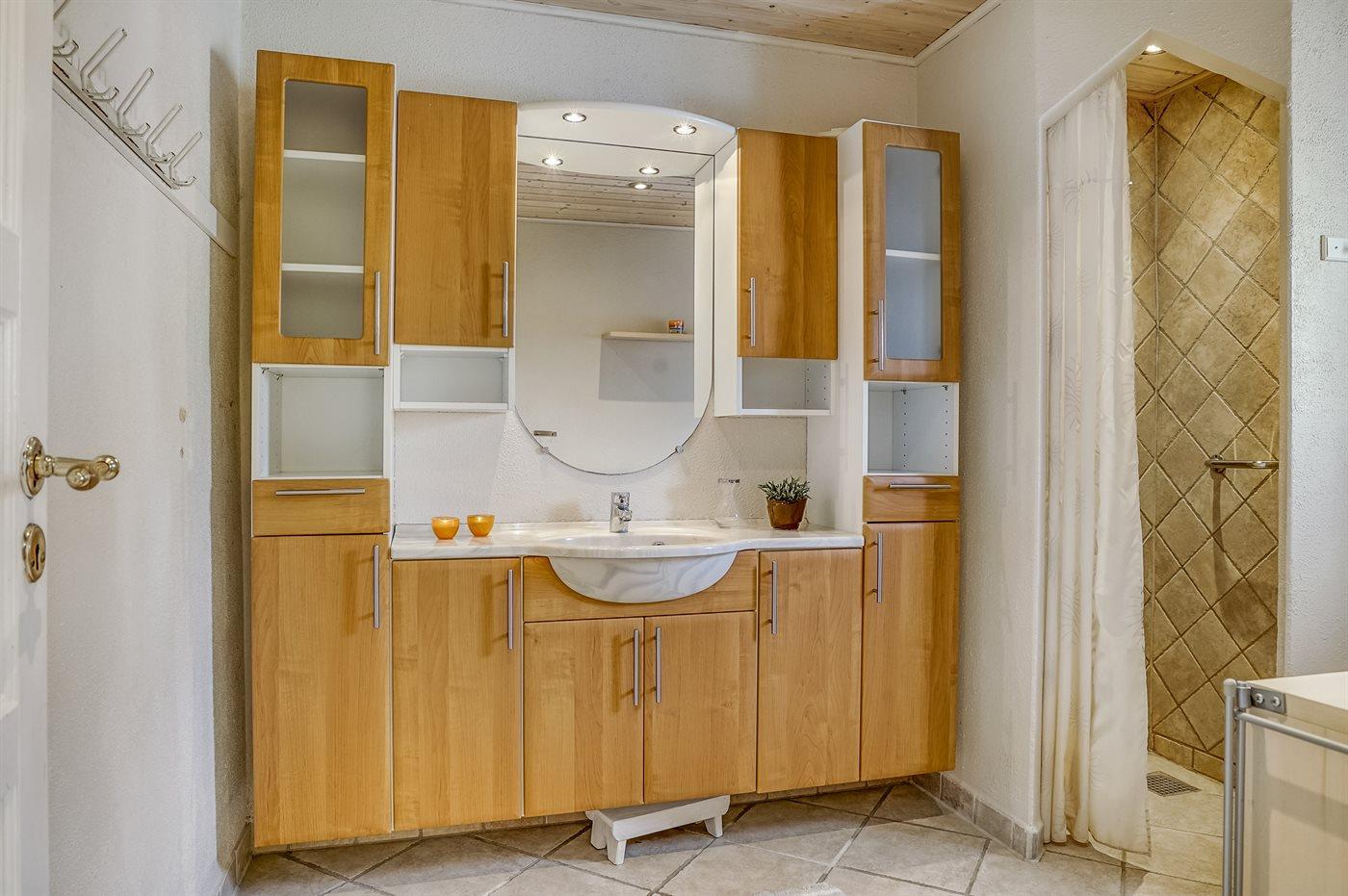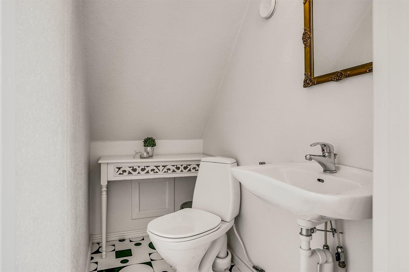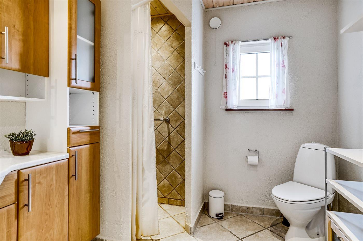 Der er 1 badeværelse med bruseniche og 2 toiletter, heraf 1 gæstetoilet. Der er gulvvarme på 1 badeværelse.