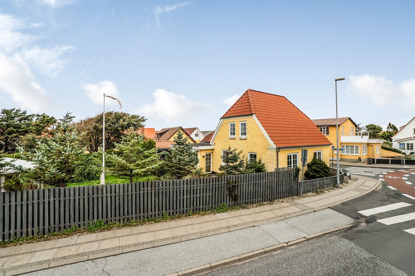Flot byhus tæt på strand og torv i Løkken