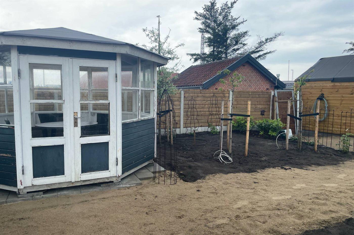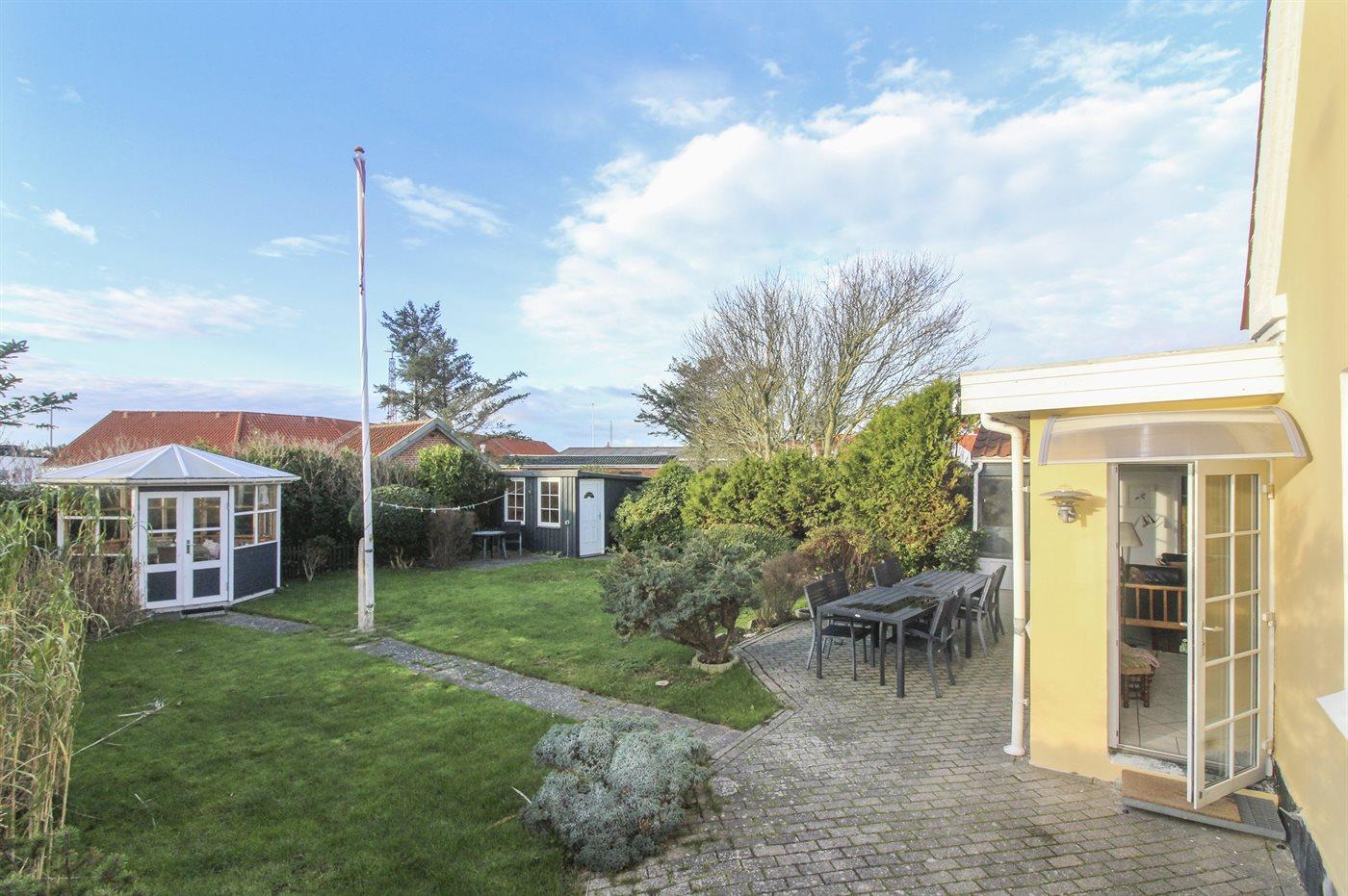 Ferieboligen er beliggende på en 461 m² stor havegrund. Grunden er indhegnet. Der er 500 m til havet. Nærmeste forretning er beliggende i en afstand af 150 m. Der er en golfbane i en afstand af 2000 m. Til ferieboligen hører 20 m² lukket terrasse. Ligeledes er der adgang til udestue. Der er redskabsrum. Parkering ved ferieboligen.
