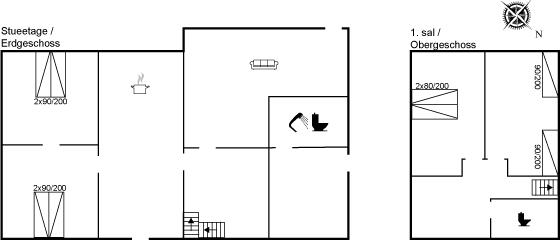 Der er i alt 4 soveværelser. Sovepladserne fordeler sig på: 4 sovepladser i dobbeltsenge. 4 sovepladser i enkeltsenge.