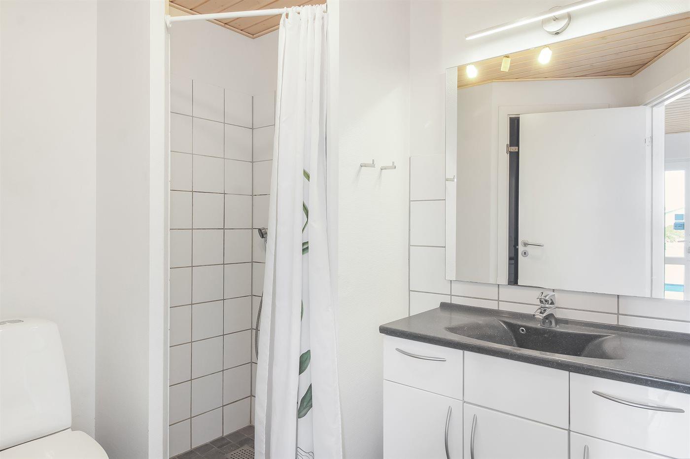 Der er 2 badeværelser med bruseniche og 2 toiletter. Der er gulvvarme på 2 badeværelser. I saunaen er der mulighed for afslapning.