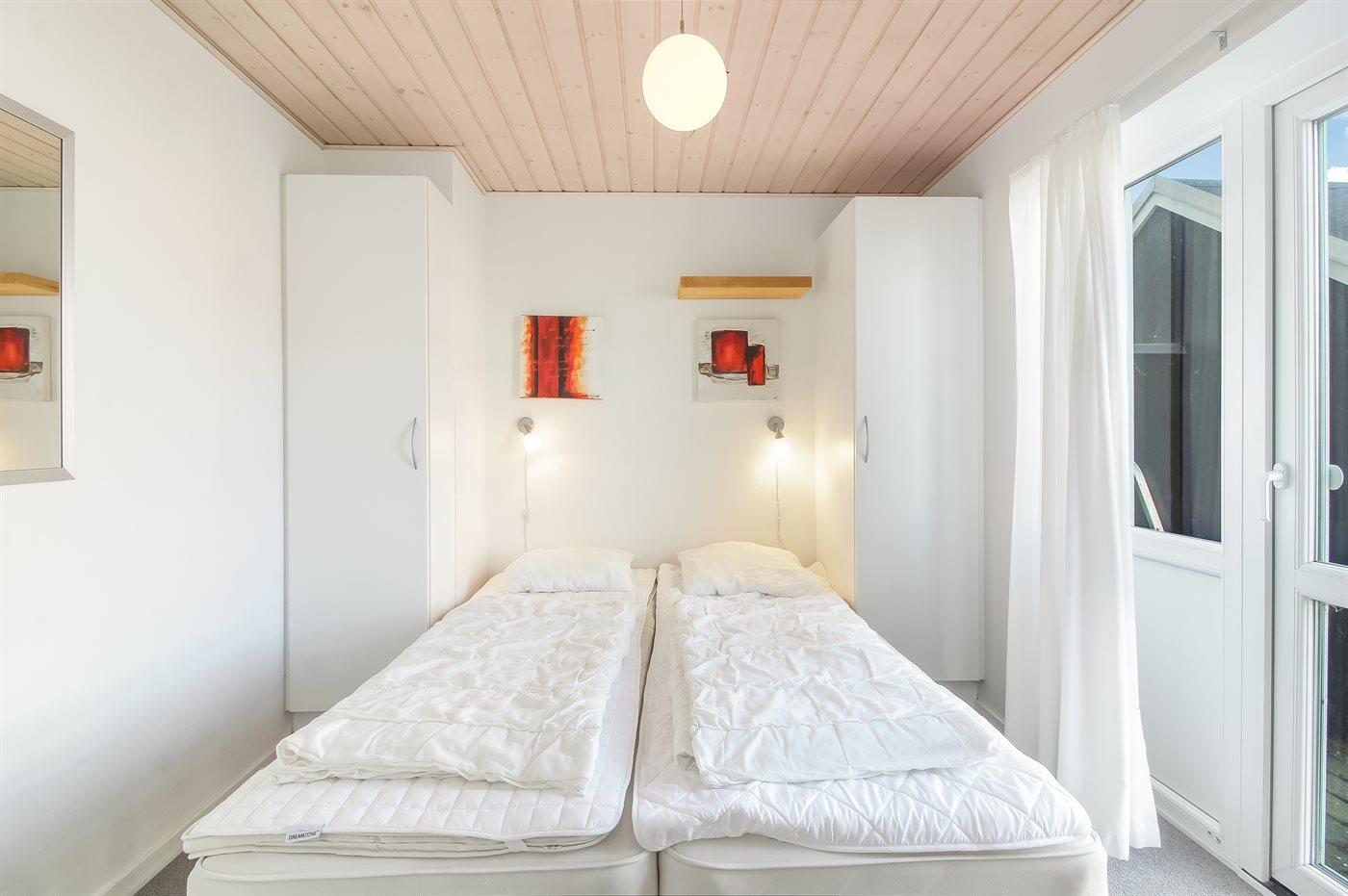 Der er i alt 4 soveværelser. Sovepladserne fordeler sig på: 4 sovepladser i dobbeltsenge. 4 sovepladser i enkeltsenge.