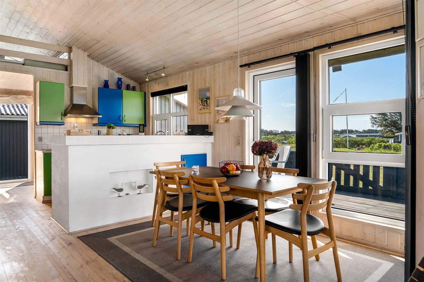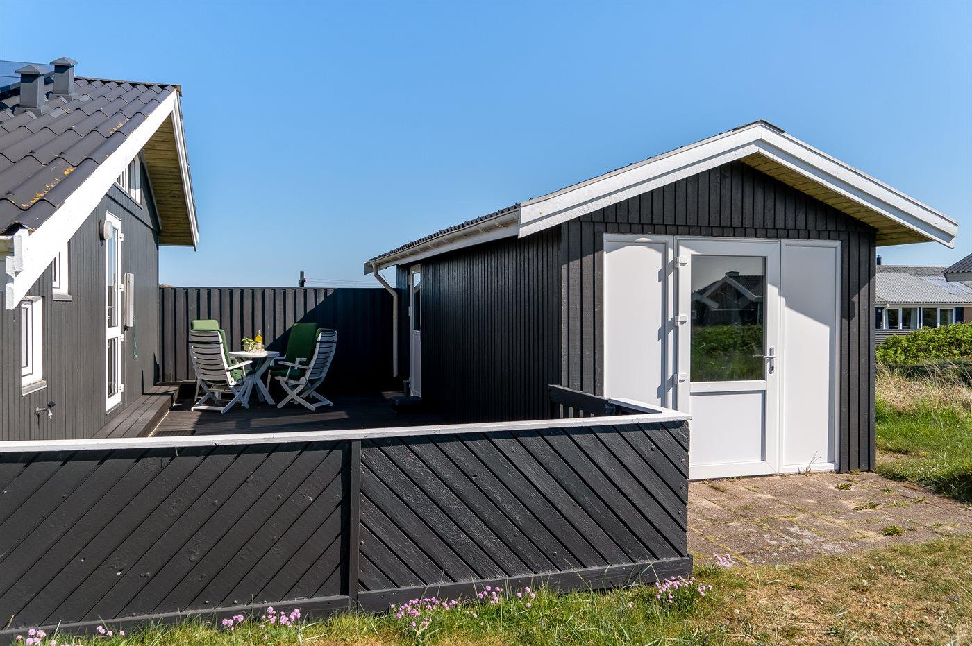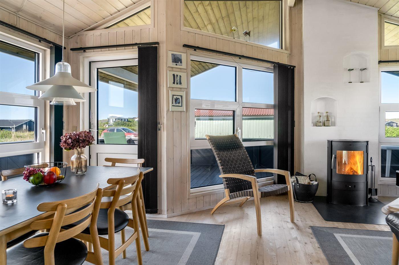 Velholdt sommerhus beliggende på en åben grund, på lukket vej, tæt ved stranden og Vesterhavet. Huset er indrettet med hems, hvor børnene kan boltre sig med at se film på TV og DVD.