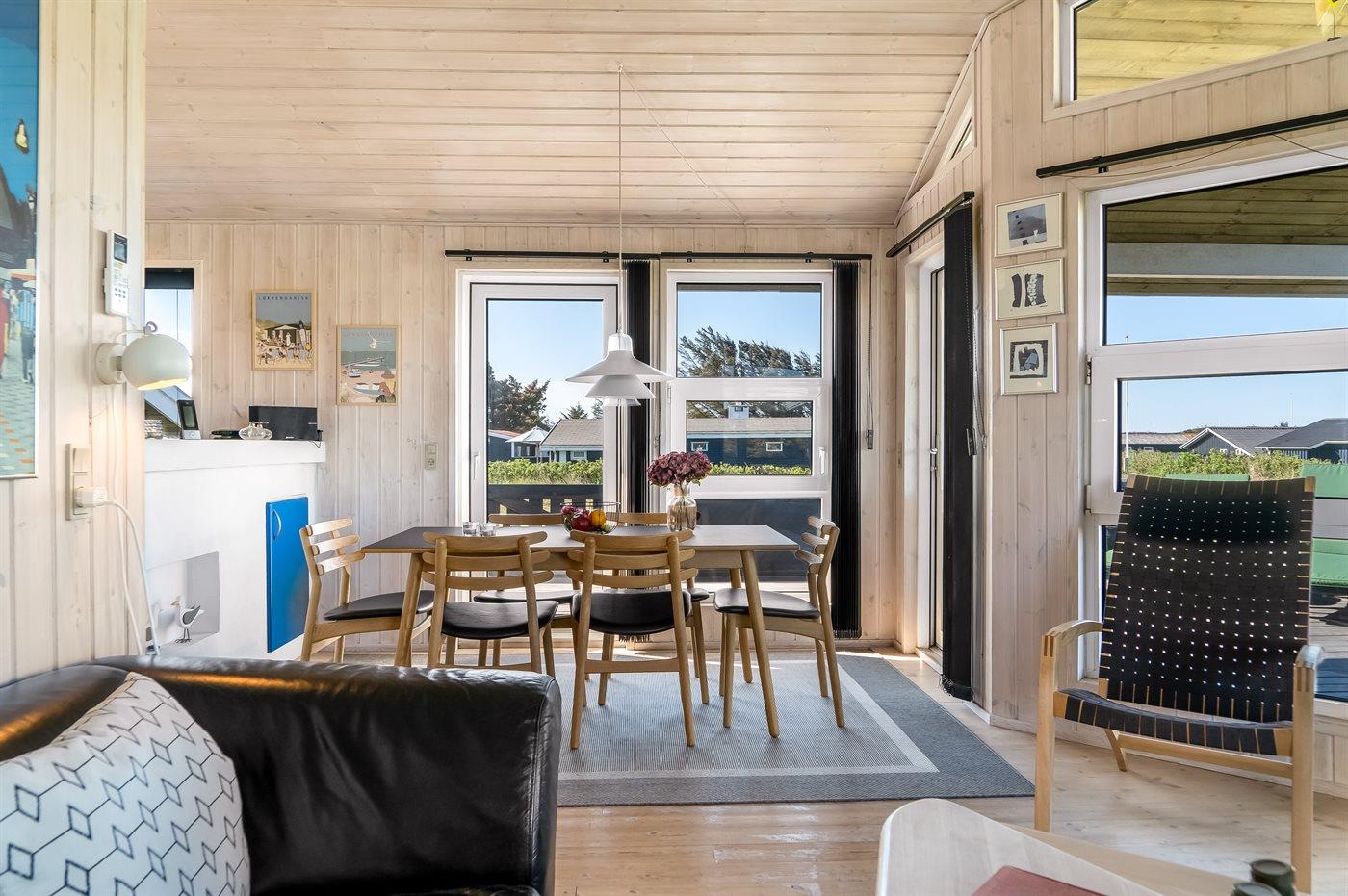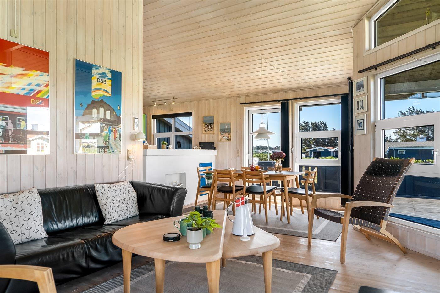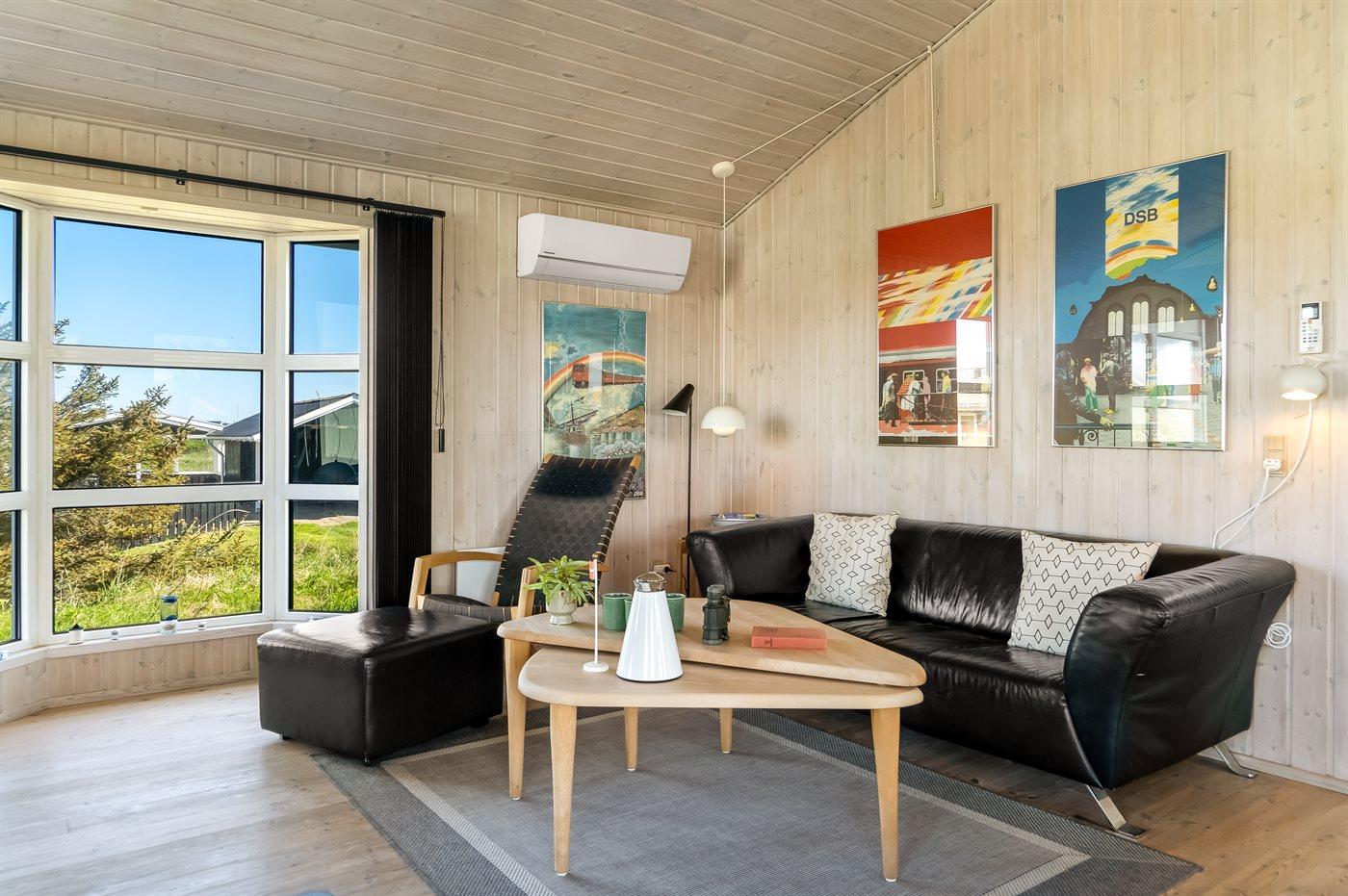 Velholdt sommerhus beliggende på en åben grund, på lukket vej, tæt ved stranden og Vesterhavet. Huset er indrettet med hems, hvor børnene kan boltre sig med at se film på TV og DVD.