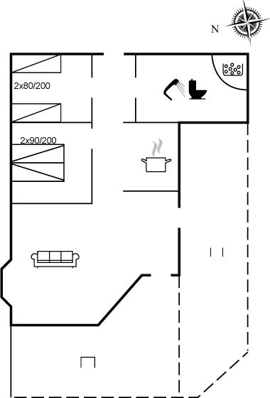 Der er i alt 2 soveværelser. Sovepladserne fordeler sig på: 2 sovepladser i dobbeltseng. 2 sovepladser i enkeltsenge.