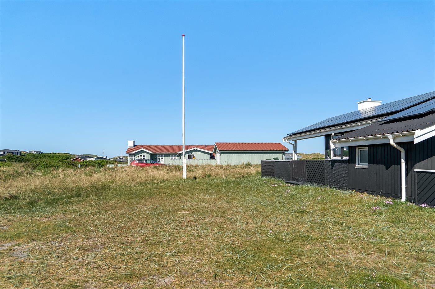 Ferieboligen er beliggende på en 880 m² stor naturgrund. Der er 300 m til havet. Nærmeste forretning er beliggende i en afstand af 1000 m. Til ferieboligen hører i alt 60 m² lukket terrasse. Heraf er 18 m² overdækket. Udgang til solgård. Der er redskabsrum. Der er installeret stik til opladning af elbil. Parkering ved ferieboligen.
