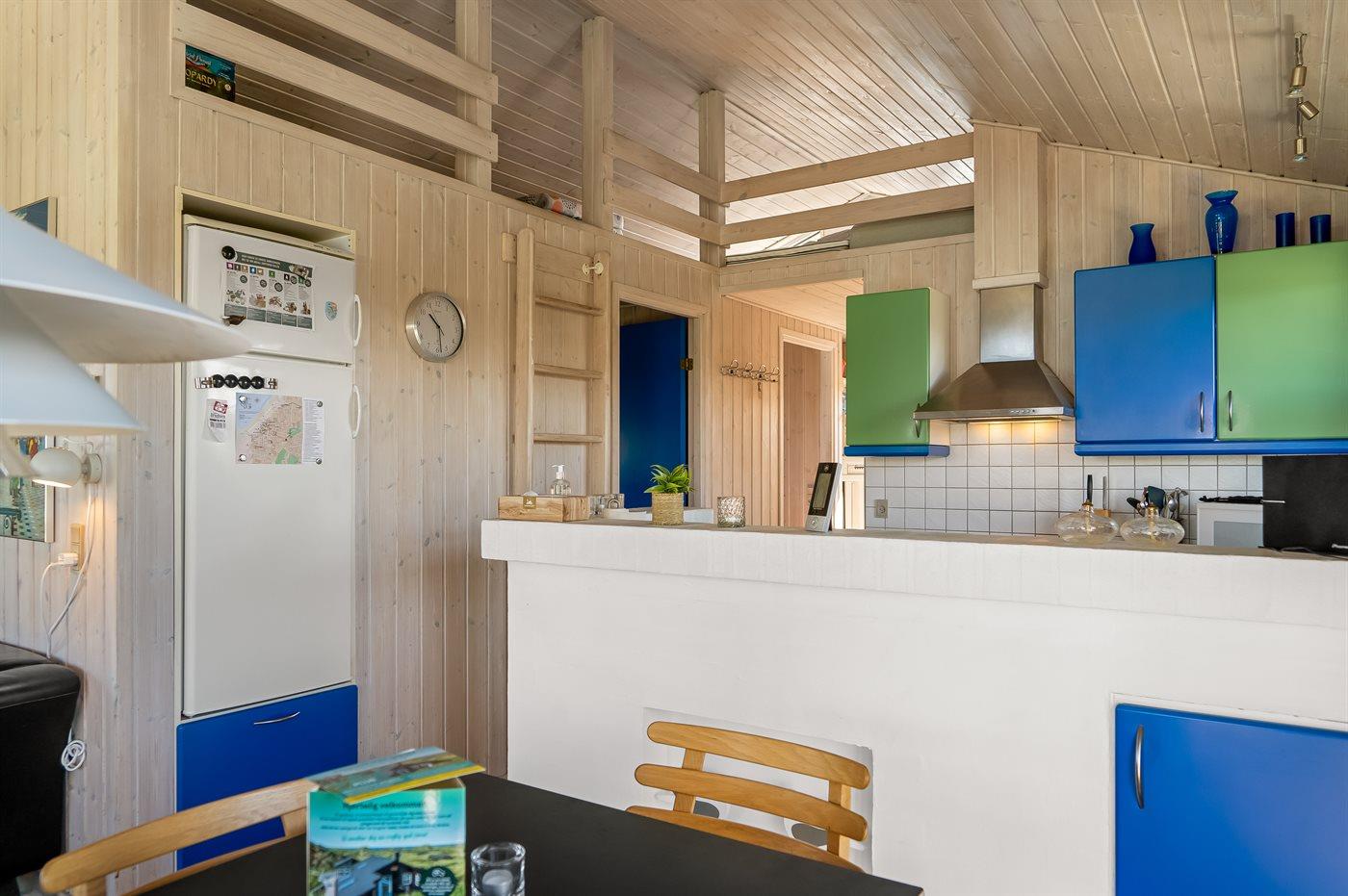 Køkkenet er udstyret med 1 køleskab. Der er 4 keramiske kogeplader, varmluftovn, mikrobølgeovn samt opvaskemaskine.