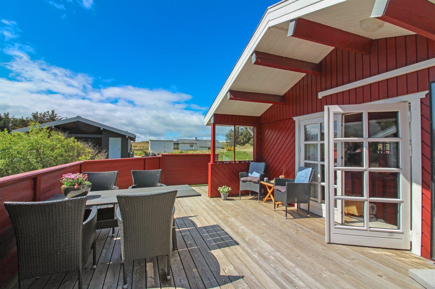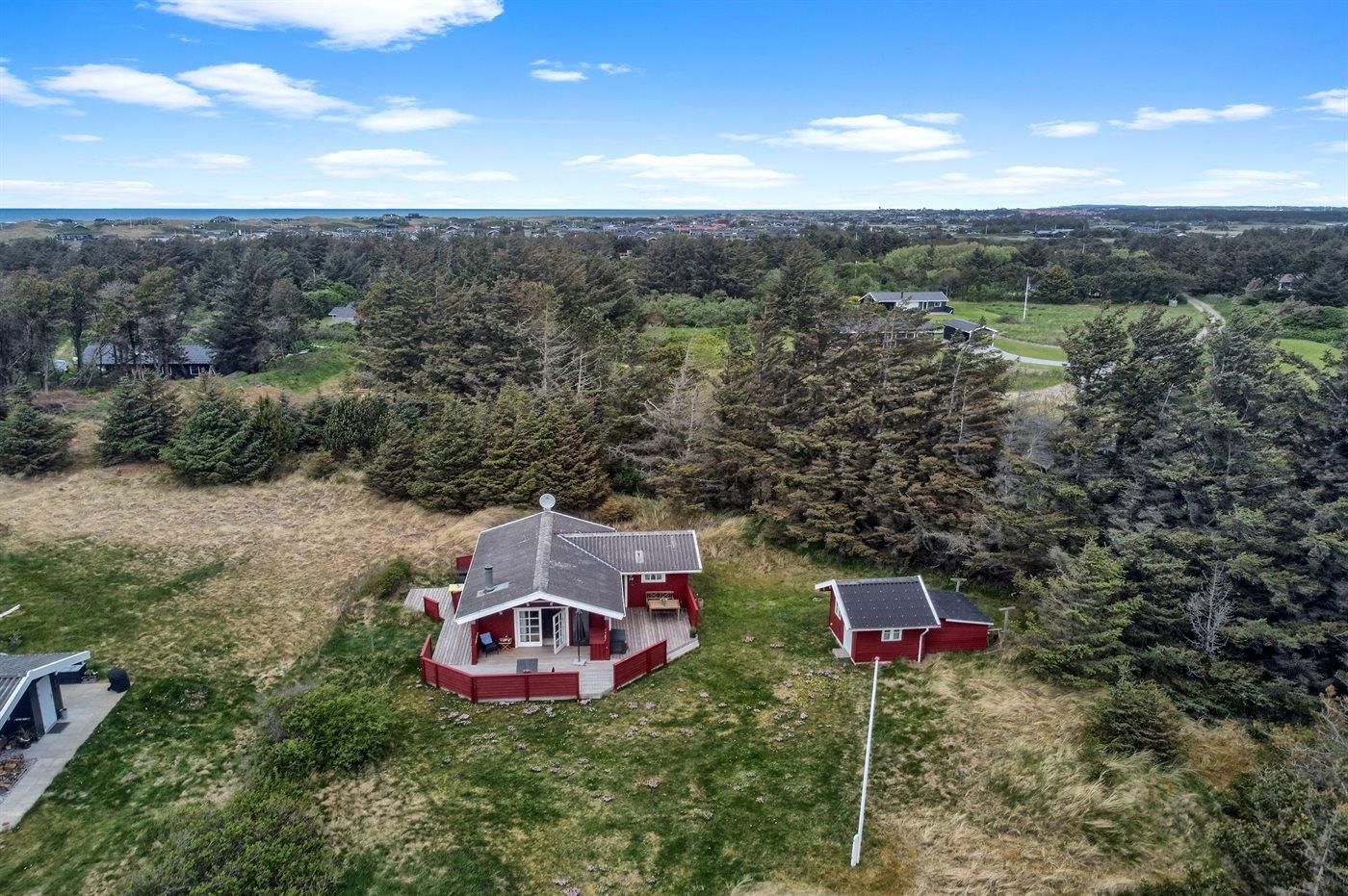Ferieboligen er beliggende på en 2500 m² stor naturgrund. Der er 700 m til havet. Nærmeste forretning er beliggende i en afstand af 2500 m. Til ferieboligen hører 80 m² terrasseareal. Desuden er der 12 m² overdækket terrasse.