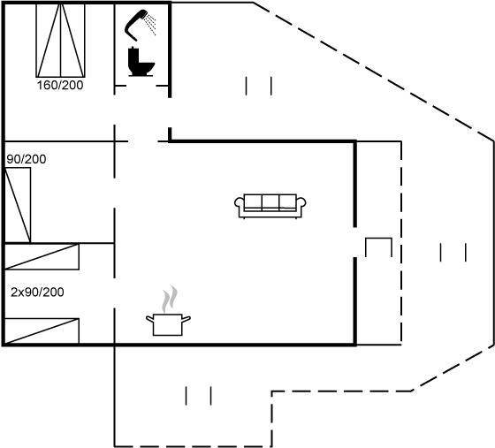 Der er i alt 3 soveværelser. Sovepladserne fordeler sig på: 2 sovepladser i dobbeltseng. 4 sovepladser i enkeltsenge. Derudover er der 1 stk. barneseng.
