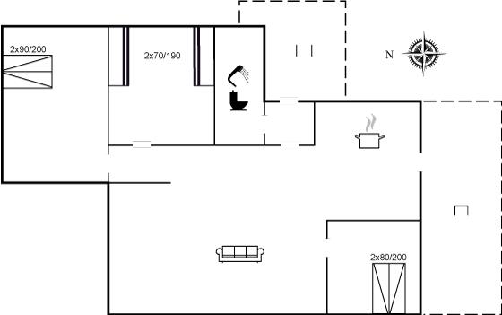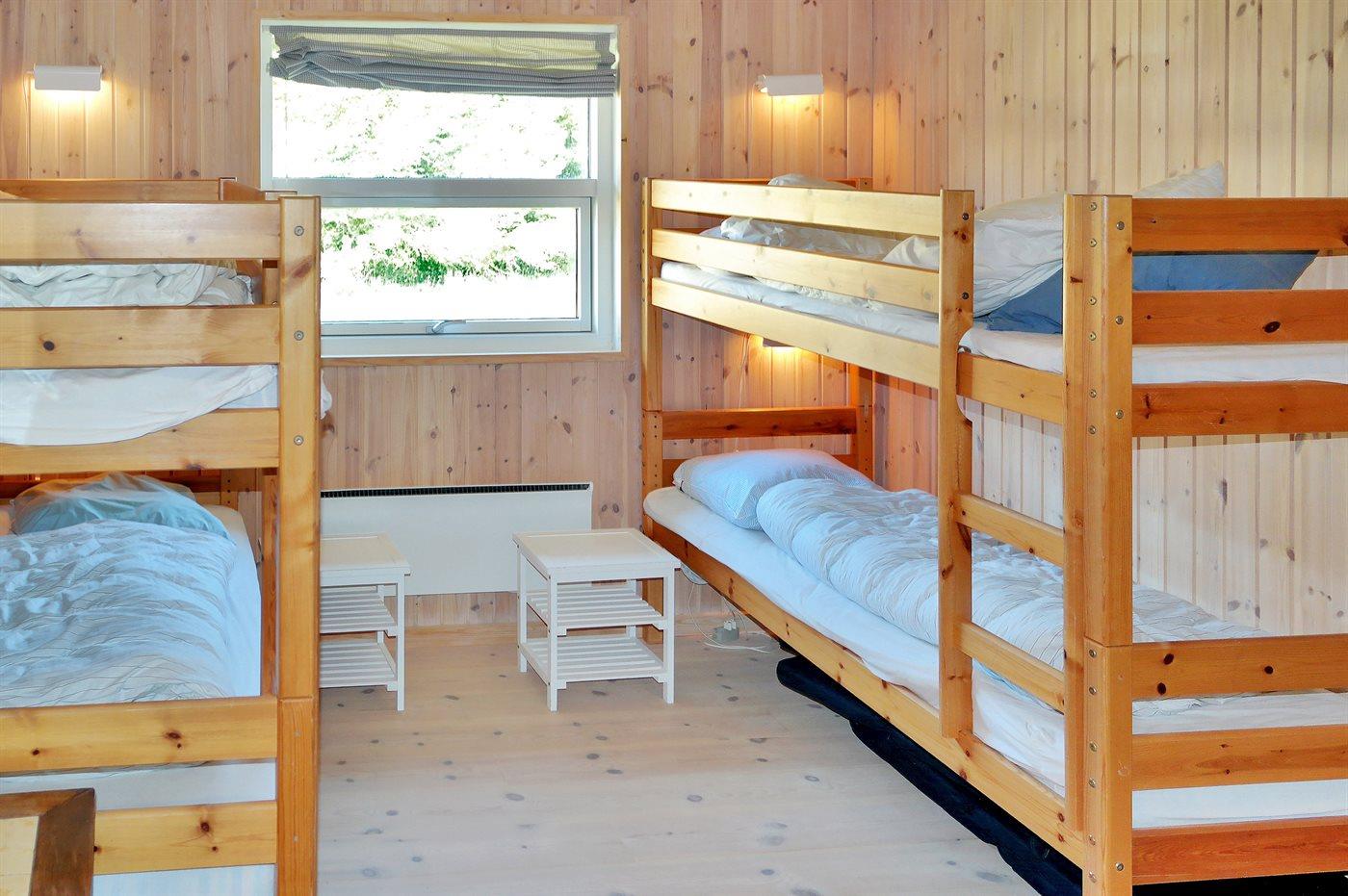 Der er i alt 3 soveværelser. Sovepladserne fordeler sig på: 4 sovepladser i dobbeltsenge. 2 sovepladser i køjeseng.