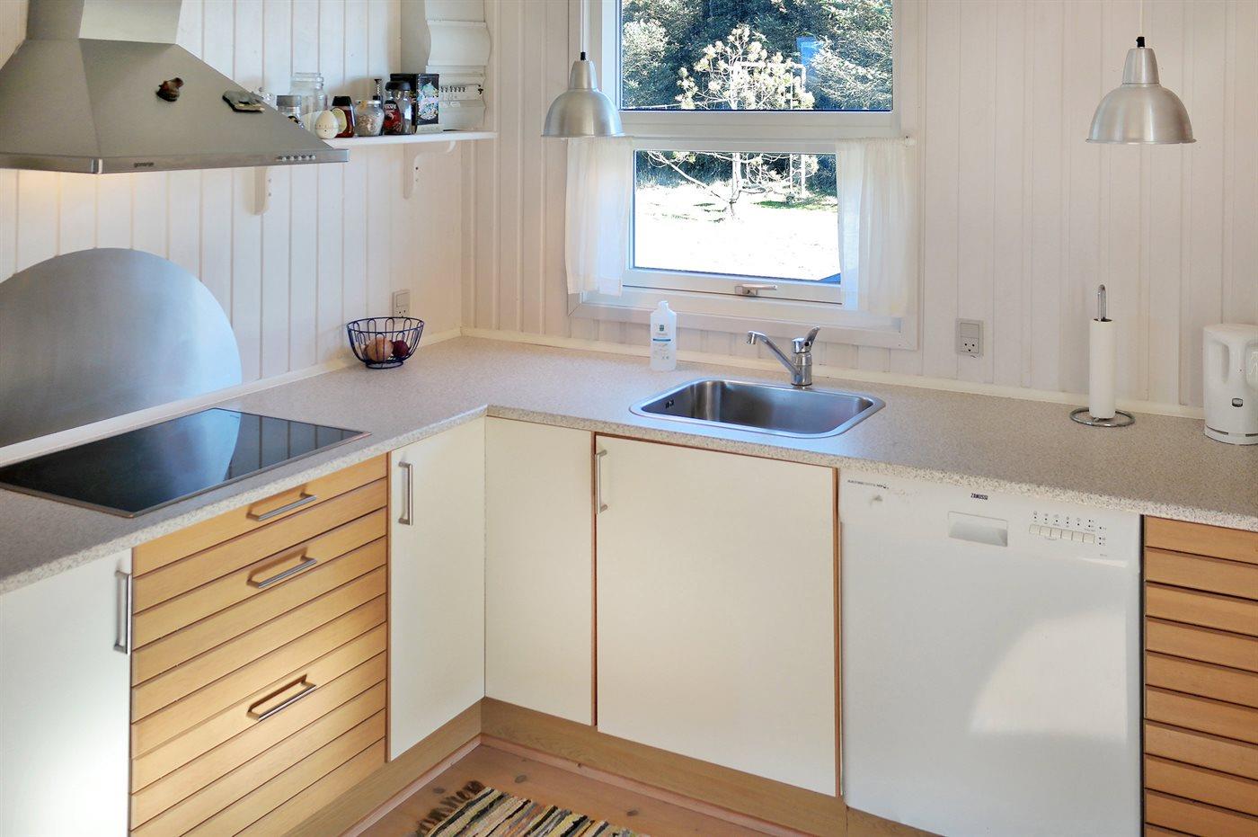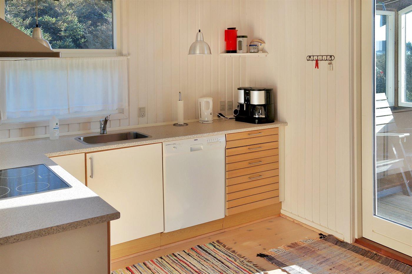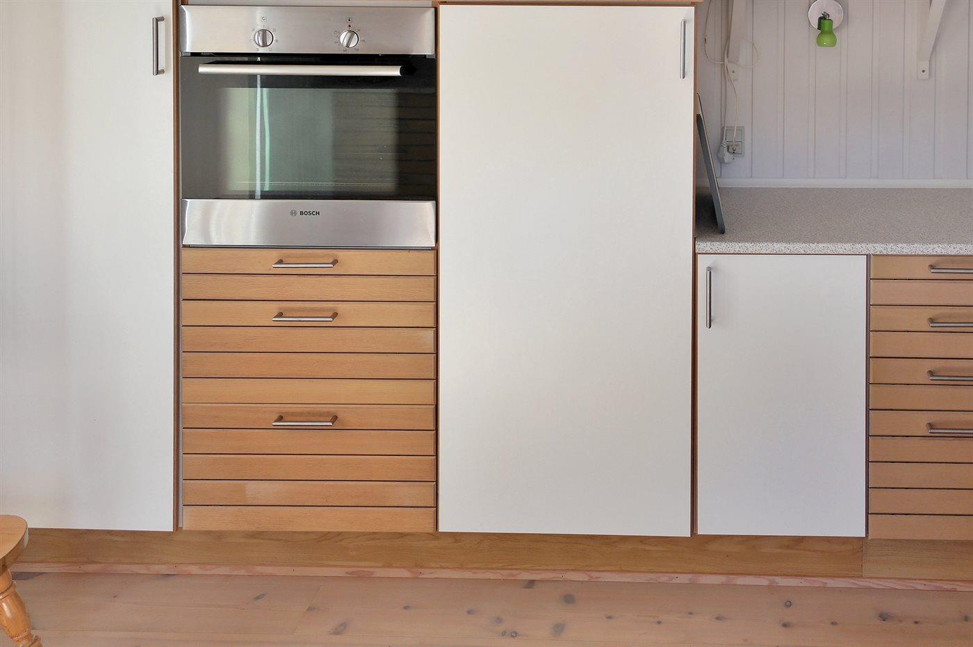 Køkkenet er udstyret med 1 køleskab. Der er 4 keramiske kogeplader, varmluftovn, mikrobølgeovn samt opvaskemaskine.