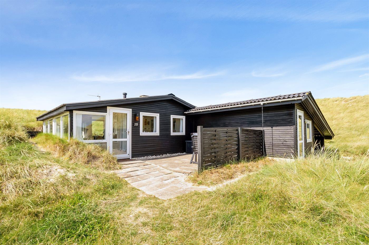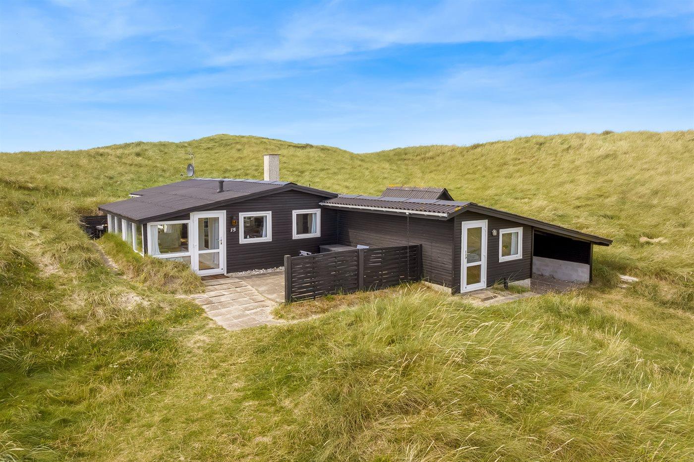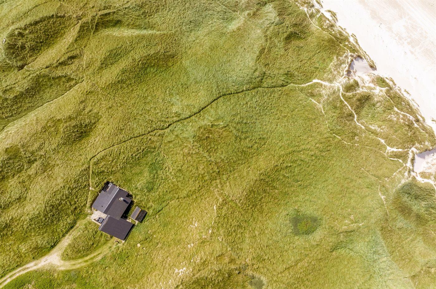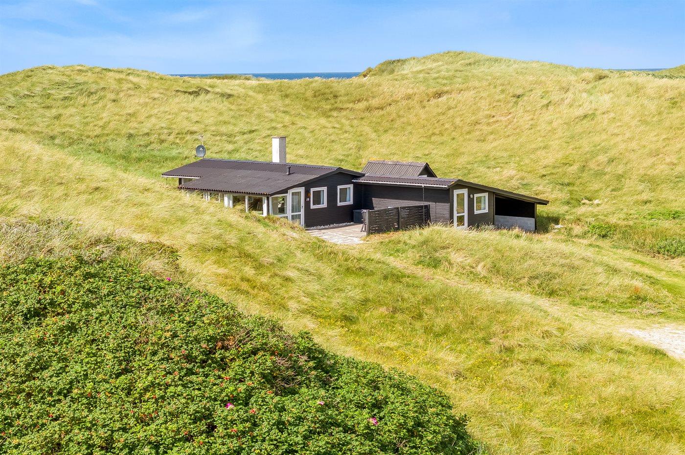 Helt ude i klitterne ligger dette smukke sommerhus med egen sti, der fører direkte til stranden. Her får man følelsen af at sidde direkte i klitterne, med og uden sand mellem tæerne. Her er der virkelig tale om at ligge i første klitrække og man kan nyde de smukke Løkken-solnedgange med havudsigt fra grunden.