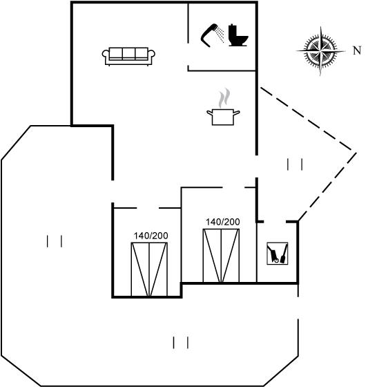 Der er i alt 2 soveværelser. Sovepladserne fordeler sig på: 4 sovepladser i dobbeltsenge. Derudover er der 1 stk. barneseng.