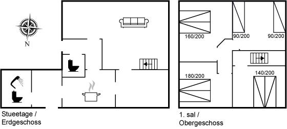 Der er i alt 4 soveværelser. Sovepladserne fordeler sig på: 6 sovepladser i dobbeltsenge. 2 sovepladser i enkeltsenge.