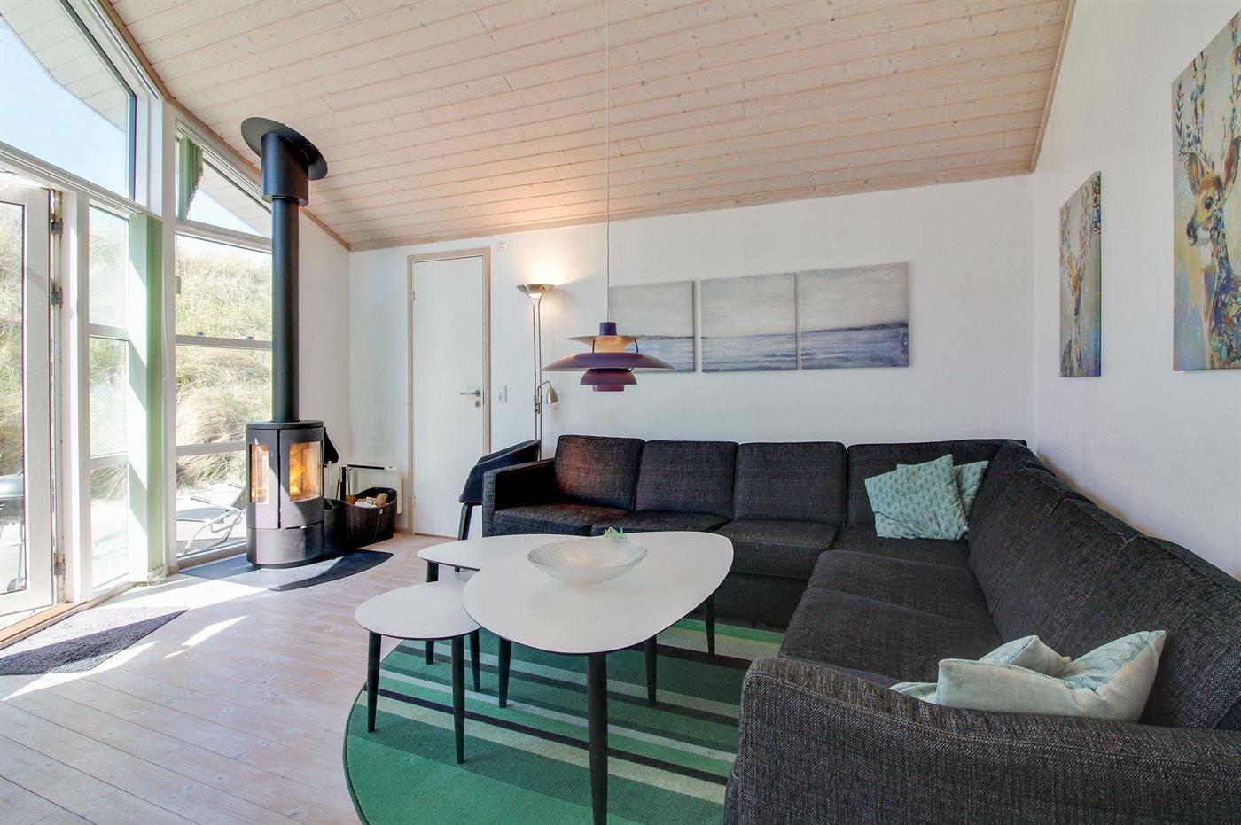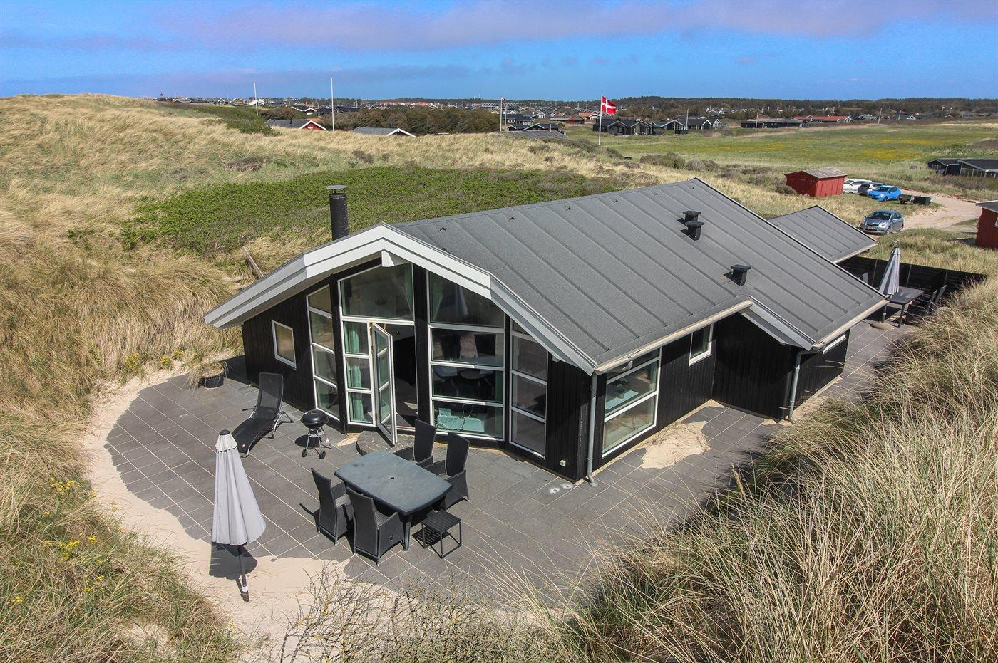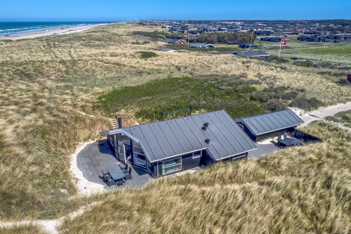 Nyt sommerhus med en fantastisk beliggenhed i første række i klitterne til Vesterhavet med udsigt til havet fra grunden. Huset og terrassen ligger derimod i god læ af klitterne mod vestenvinden.