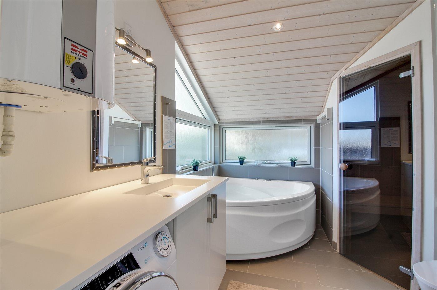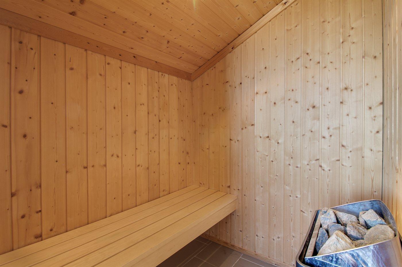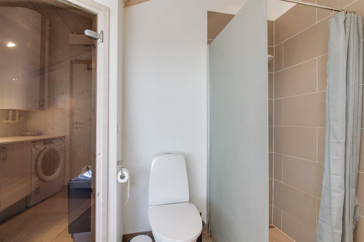 Der er 1 badeværelse med bruseniche og 1 toilet.. Der er gulvvarme på 1 badeværelse. I saunaen er der mulighed for afslapning.