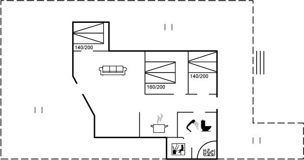 Der er i alt 3 soveværelser. Sovepladserne fordeler sig på: 6 sovepladser i dobbeltsenge.