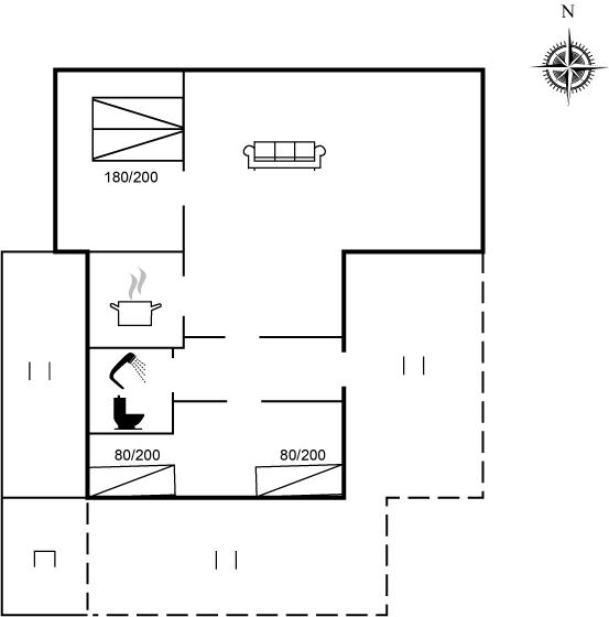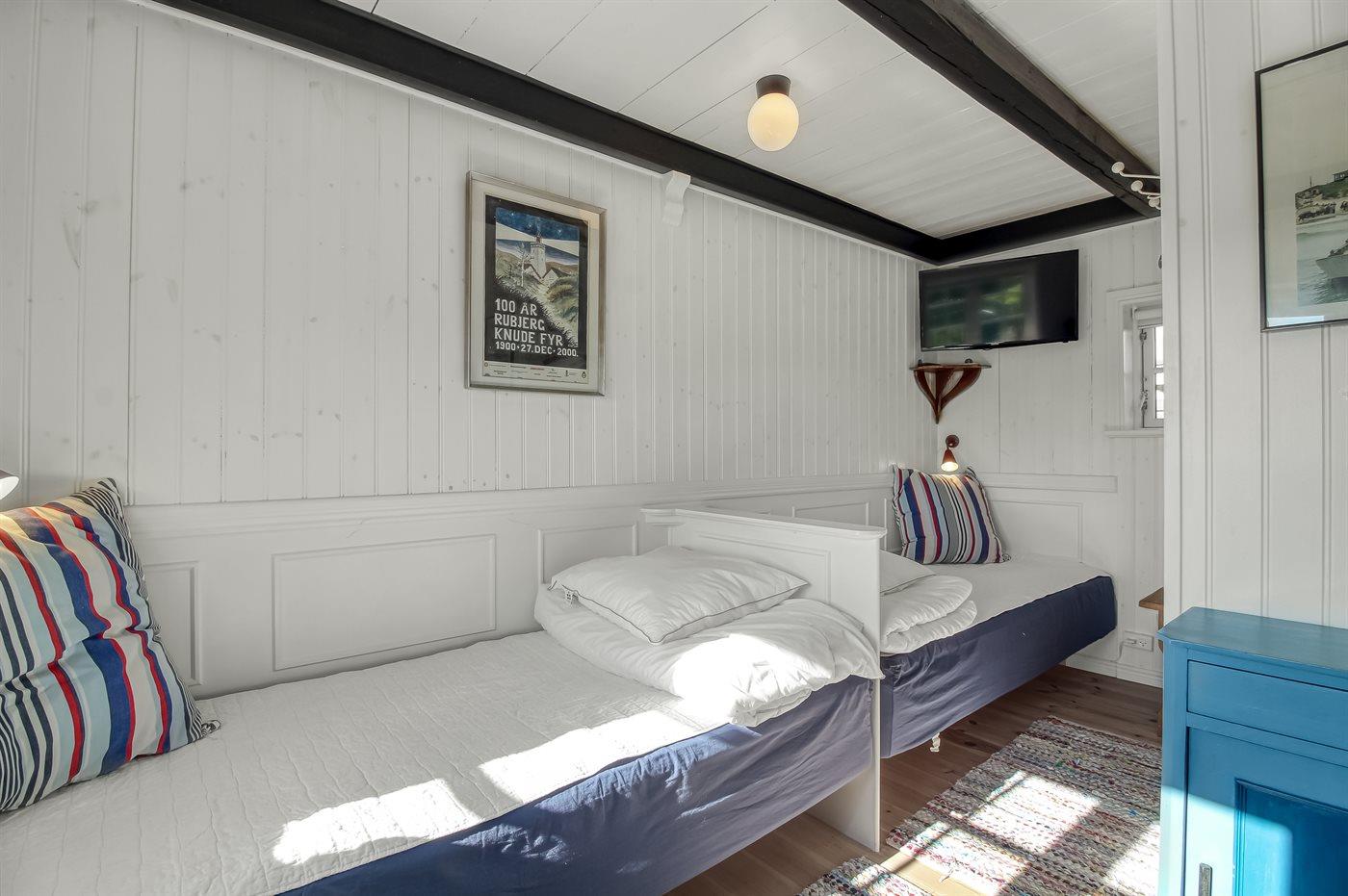 Der er i alt 2 soveværelser. Sovepladserne fordeler sig på: 2 sovepladser i dobbeltseng. 2 sovepladser i enkeltsenge.
