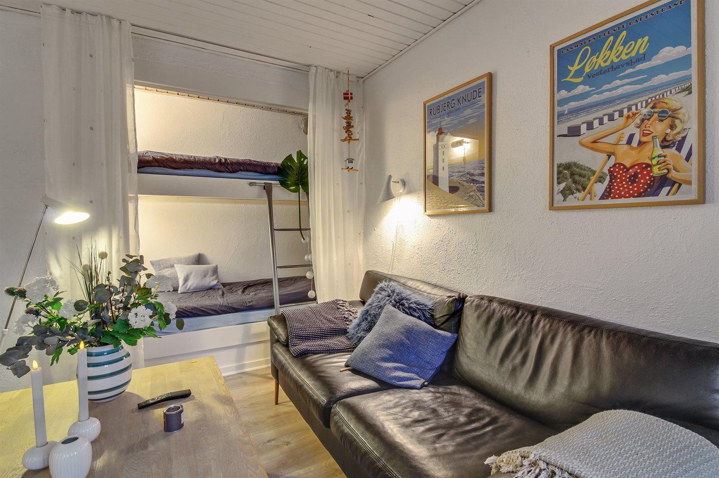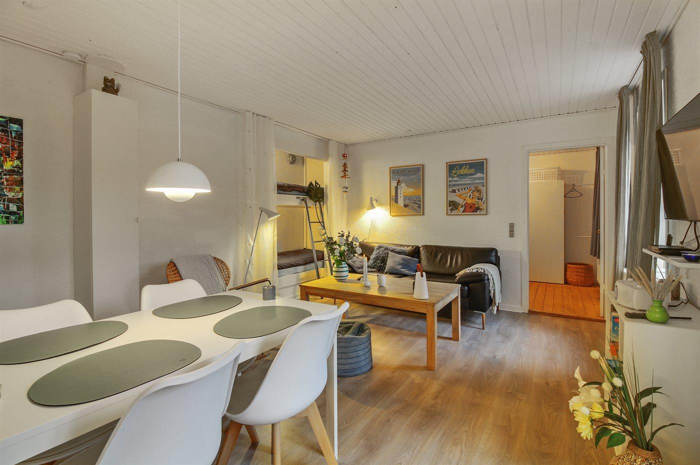 Ferielejlighed beliggende centralt i Løkken by og tæt på dejlig badestrand. Bemærk: 2 sovepladser i alkoven (køjeseng) i opholdsstuen.