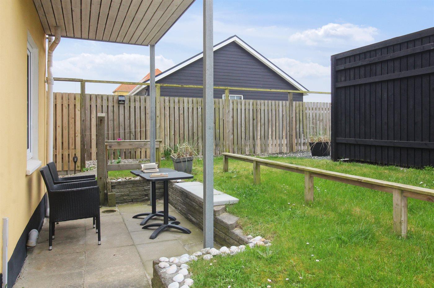 Ferieboligen er beliggende på en 75 m² stor naturgrund. Der er 250 m til havet. Nærmeste forretning er beliggende i en afstand af 350 m. Til ferieboligen hører 20 m² terrasseareal. Parkering ved ferieboligen.