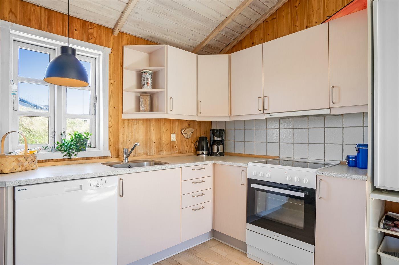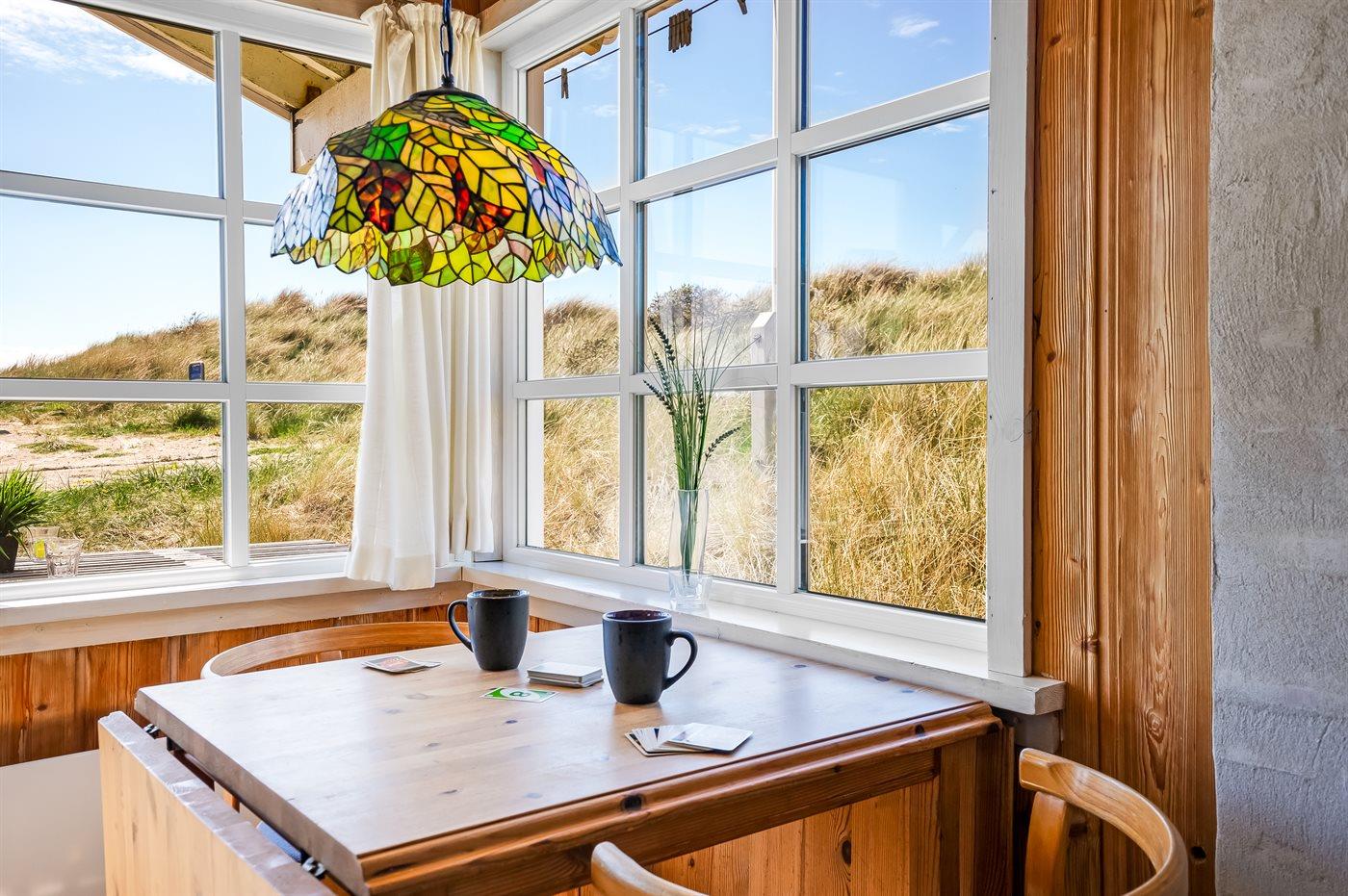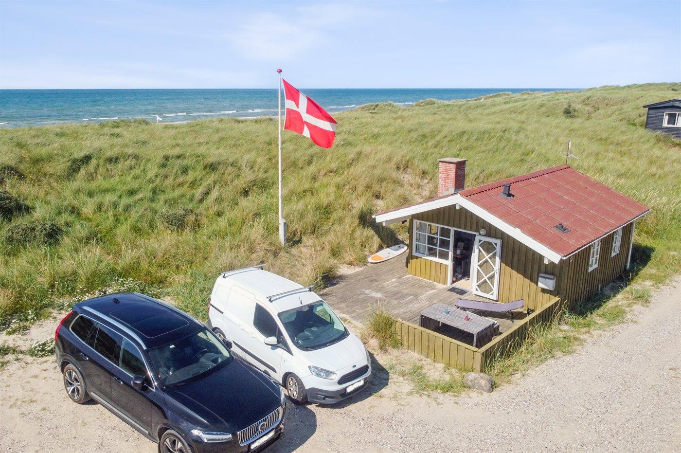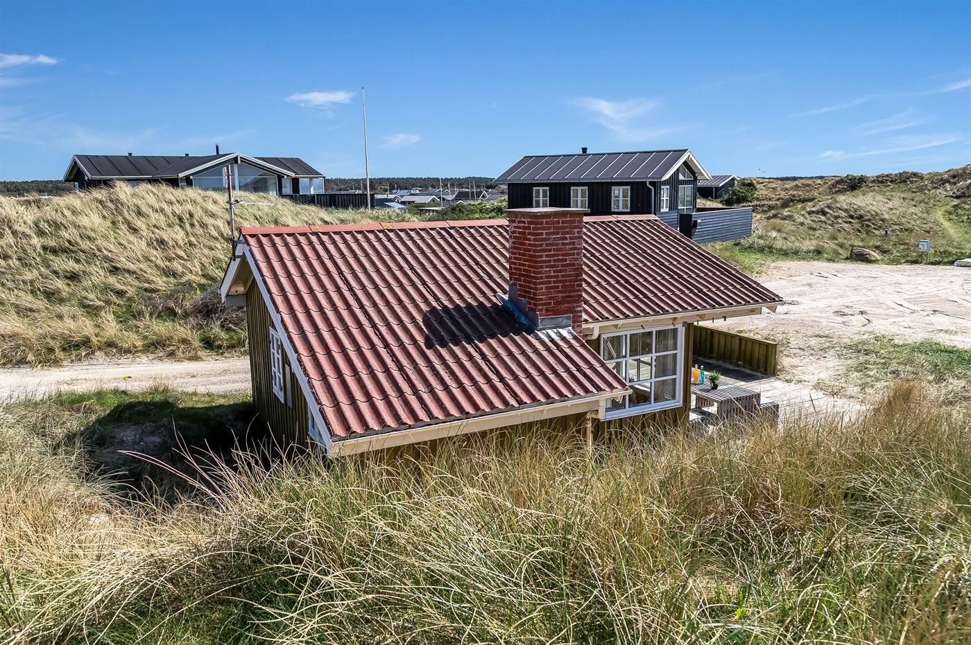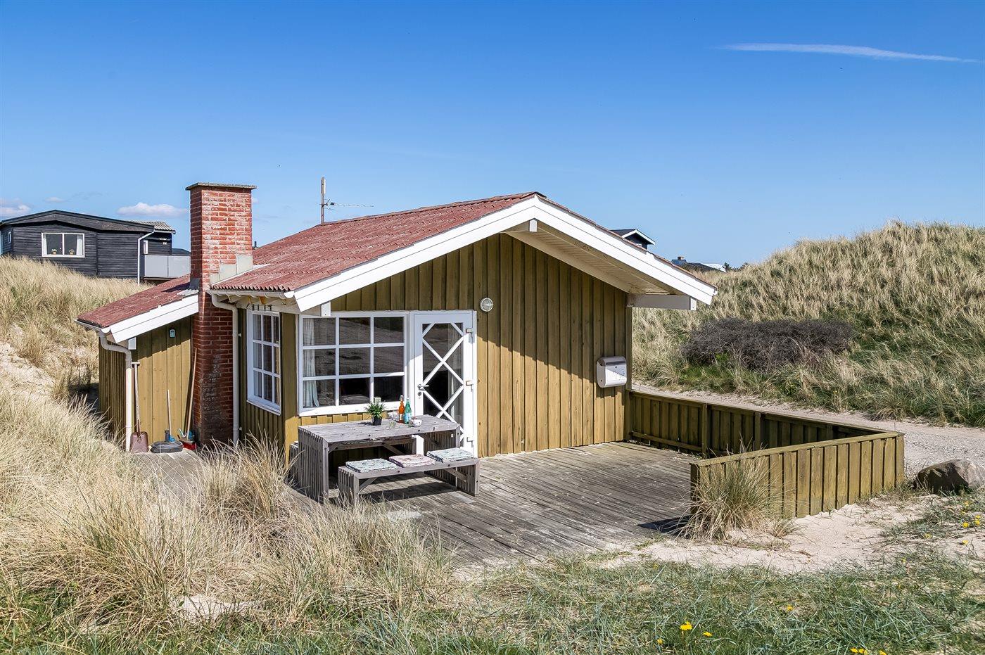 Hyggeligt lille sommerhus beliggende i yderste række og lige bag klitterne til stranden og Vesterhavet på en kuperet grund med udsigt til vandet fra grunden. Huset ligger på en blind vej i et attraktivt sommerhusområde tæt på nedkørslen til stranden og nær Løkken by, og er indrettet med hems.