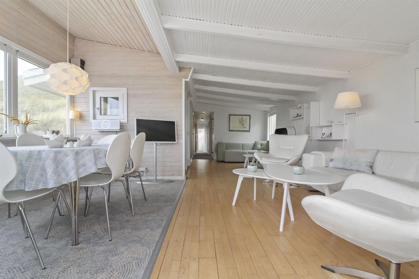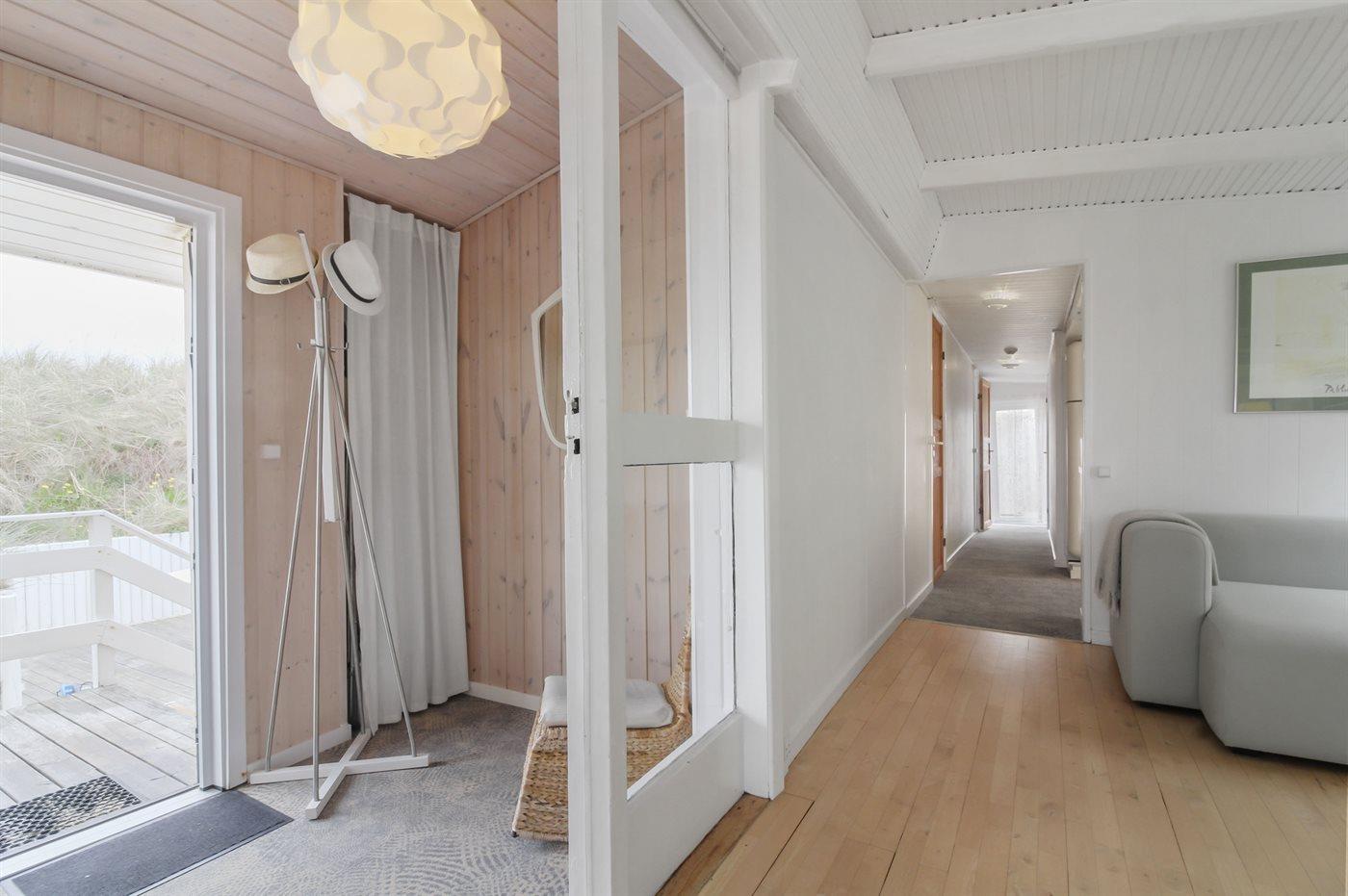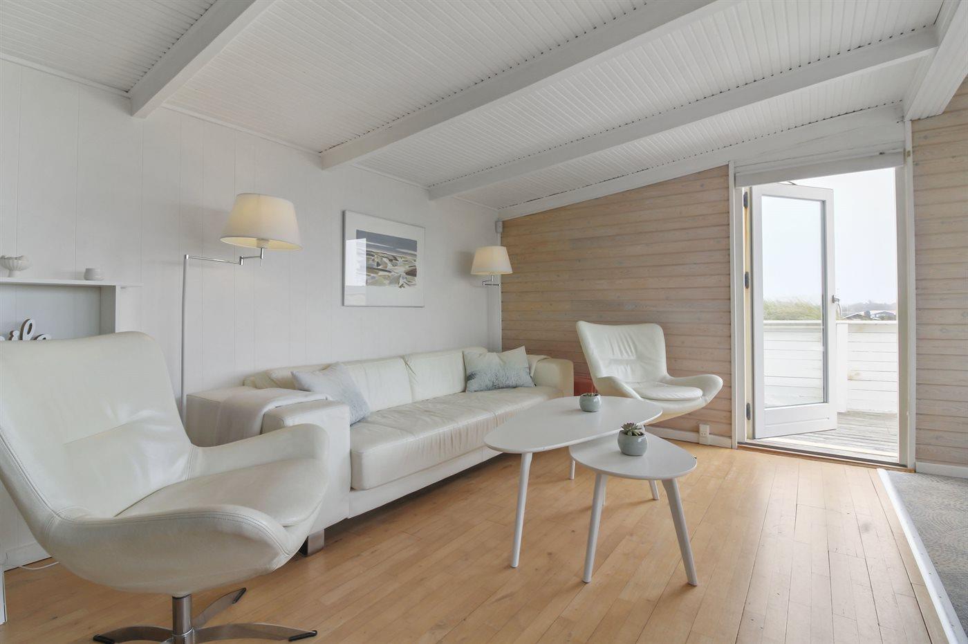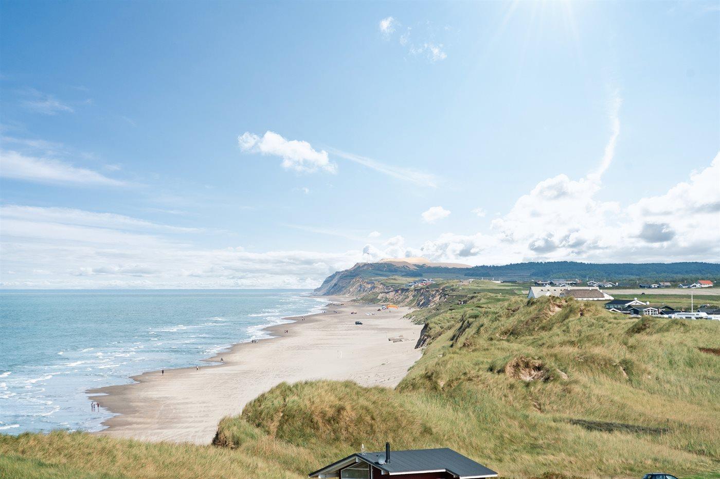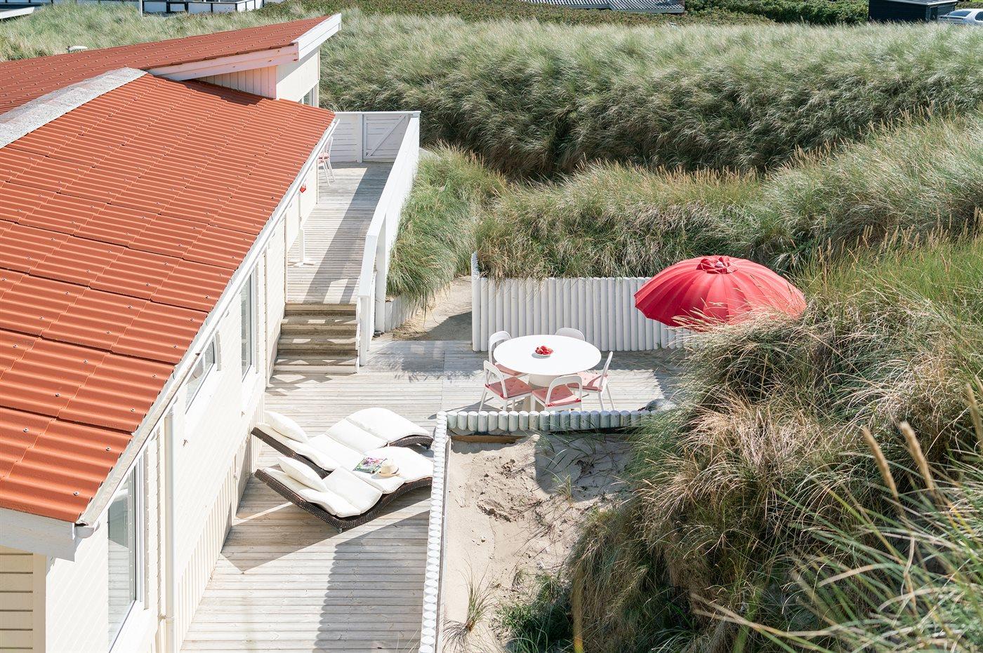 Kør ad de små veje helt ud til de høje klitter hvor dette skønne sommerhus ligger hævet over vejen i yderste klitrække til stranden og Vesterhavet. Huset er bygget ind i klitten i god læ for vestenvinden, og med sin høje beliggenhed er der fin udsigt over sommerhusområdet fra opholdsstuen. Fra toppen af grunden er der til gengæld havudsigt. Til huset hører en god lukket terrasse mod øst og syd.