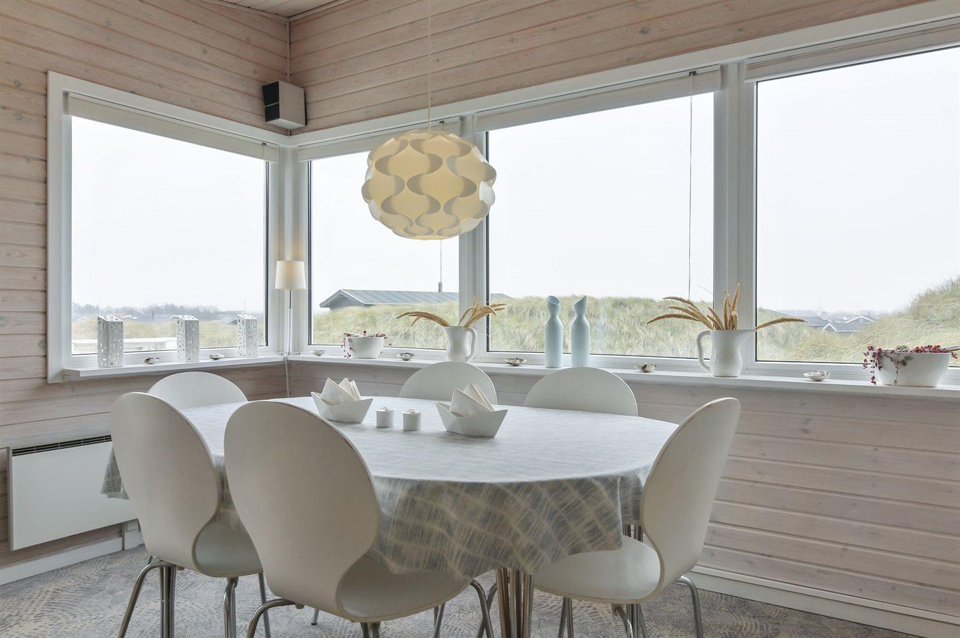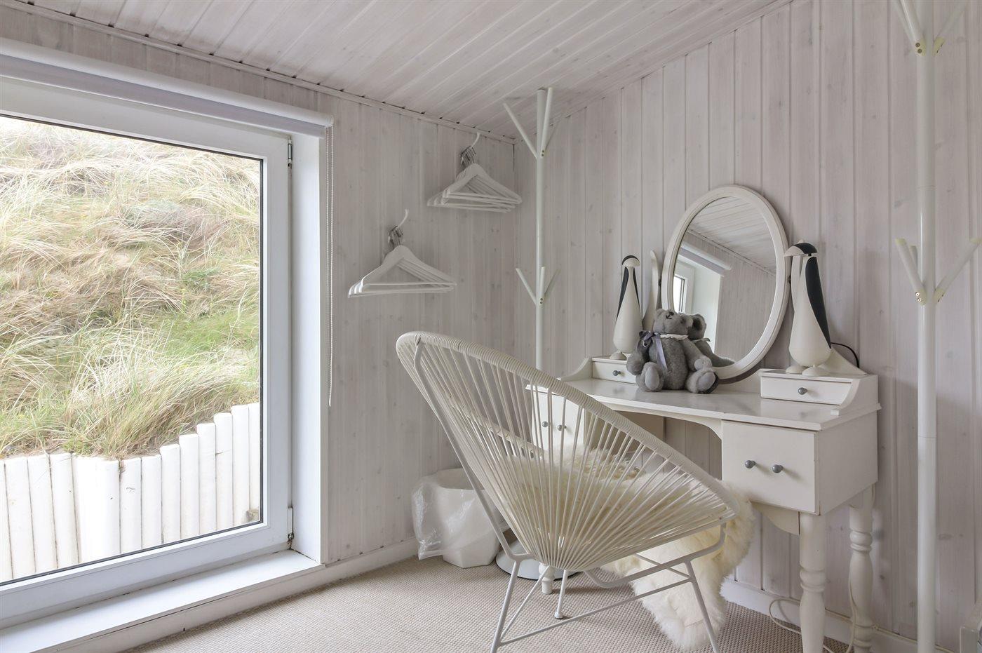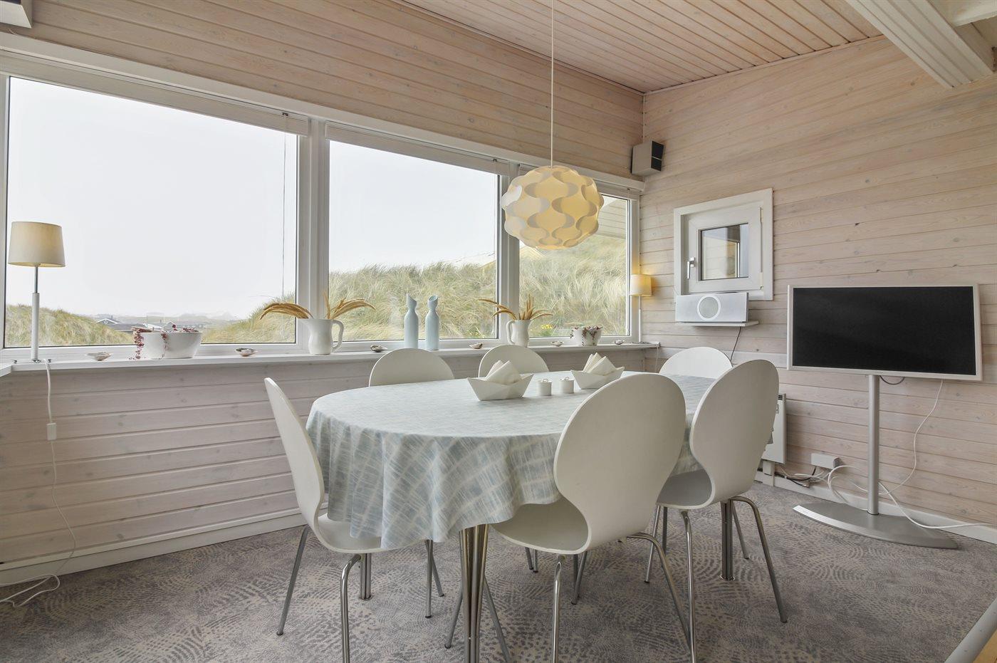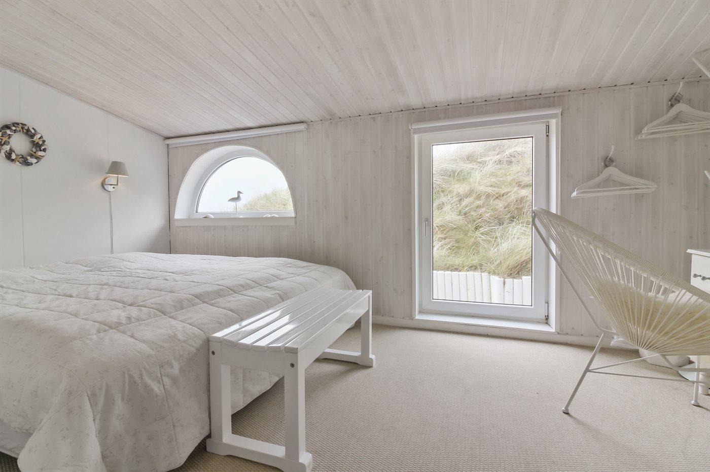 Kør ad de små veje helt ud til de høje klitter hvor dette skønne sommerhus ligger hævet over vejen i yderste klitrække til stranden og Vesterhavet. Huset er bygget ind i klitten i god læ for vestenvinden, og med sin høje beliggenhed er der fin udsigt over sommerhusområdet fra opholdsstuen. Fra toppen af grunden er der til gengæld havudsigt. Til huset hører en god lukket terrasse mod øst og syd.