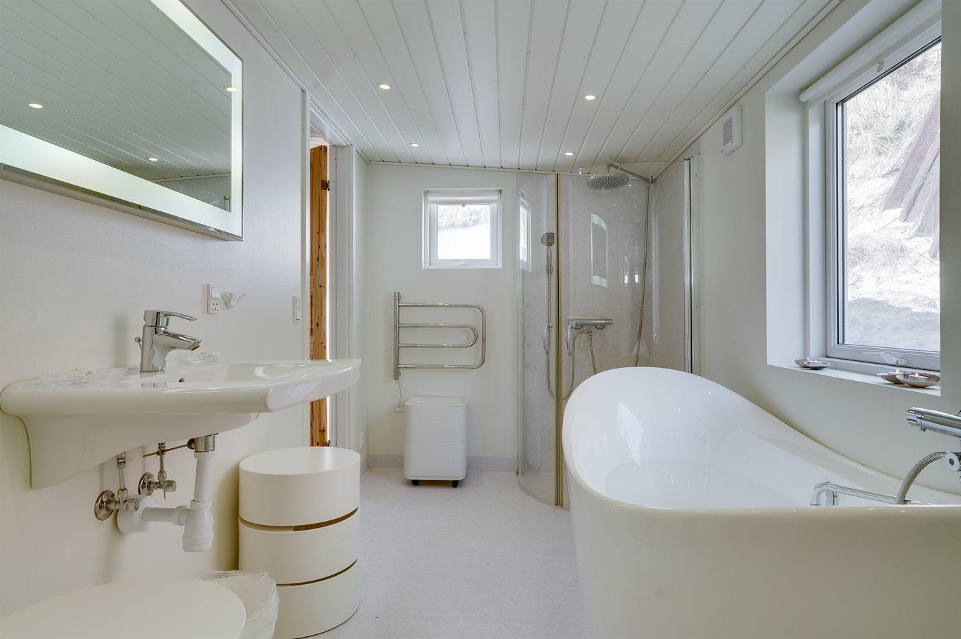 Der er 1 badeværelse med bruseniche og 1 toilet.. Der er gulvvarme på 1 badeværelse.. Badekar.