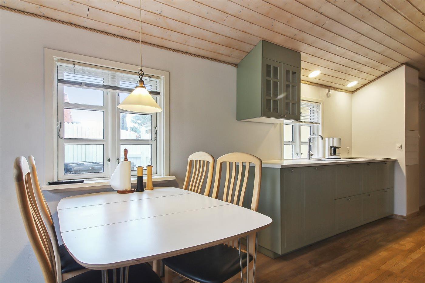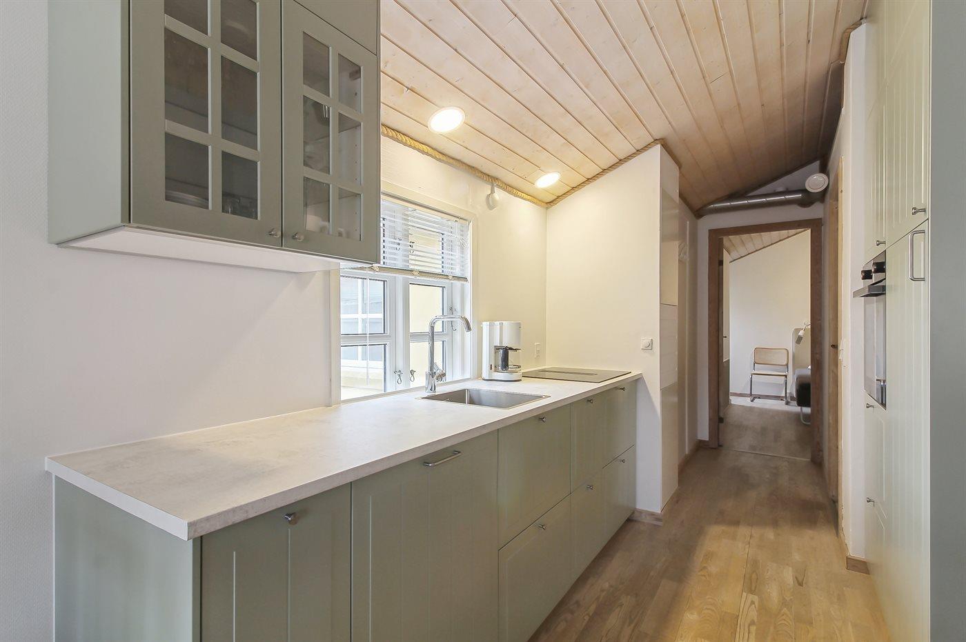 Køkkenet er udstyret med 1 køleskab. Der er 4 induktionskogeplader, varmluftovn samt opvaskemaskine.