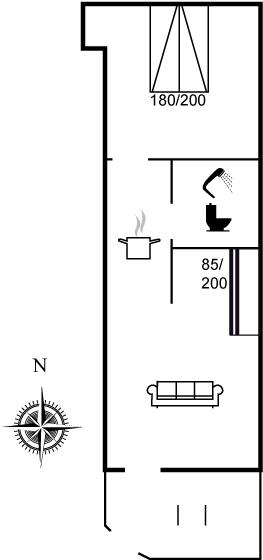 havegrund. Der er 75 m til havet. Nærmeste forretning er beliggende i en afstand af 50 m. Til ferieboligen hører 7 m² terrasseareal. Parkering ved ferieboligen.
